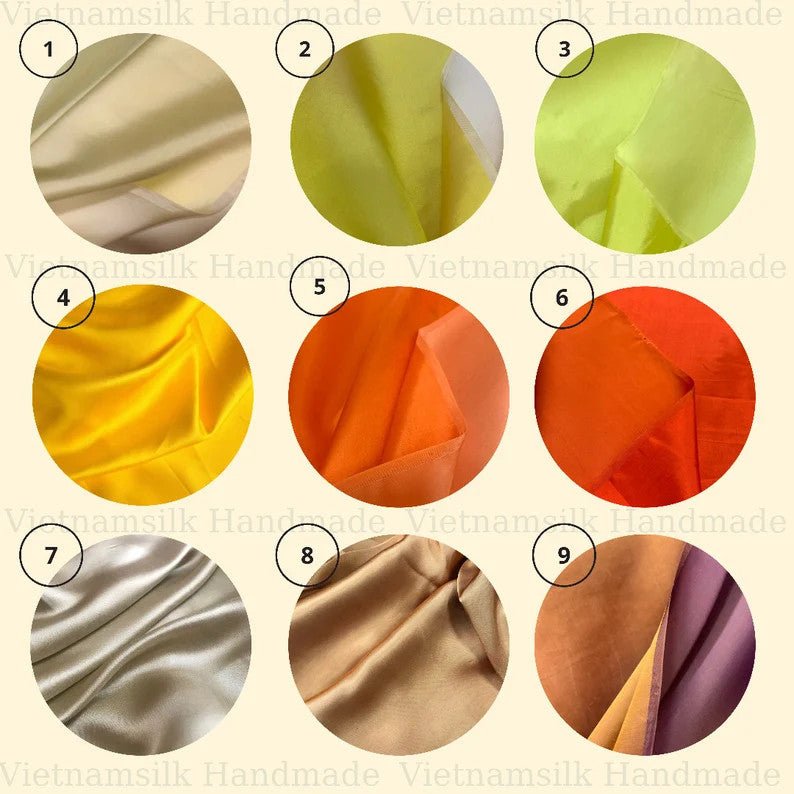 Our products come from a small village in Vietnam. A traditional village named Nha Xa silk. The villagers have made a great effort to preserve their traditional craft after over 600 years. Nha Xa's silk is known for quality, colour and beauty better than others.