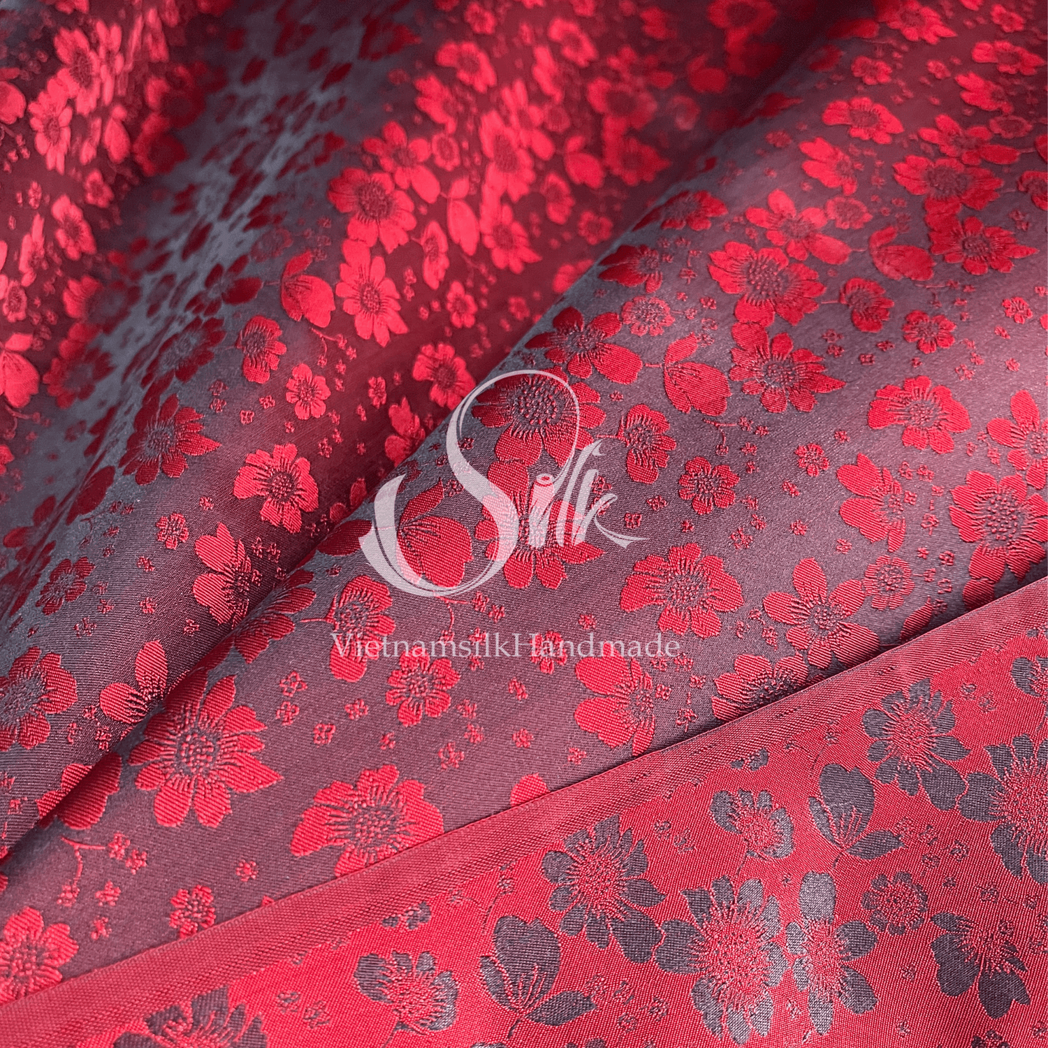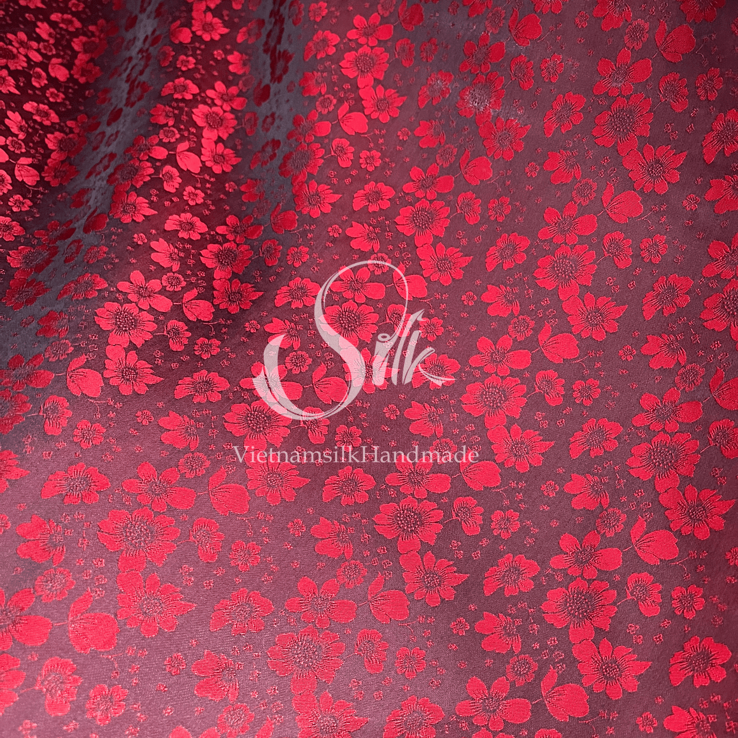 Black Silk with Red Flowers - PURE MULBERRY SILK fabric by the yard - Floral Silk -Luxury Silk - Natural silk - Handmade in VietNam- Silk with Design