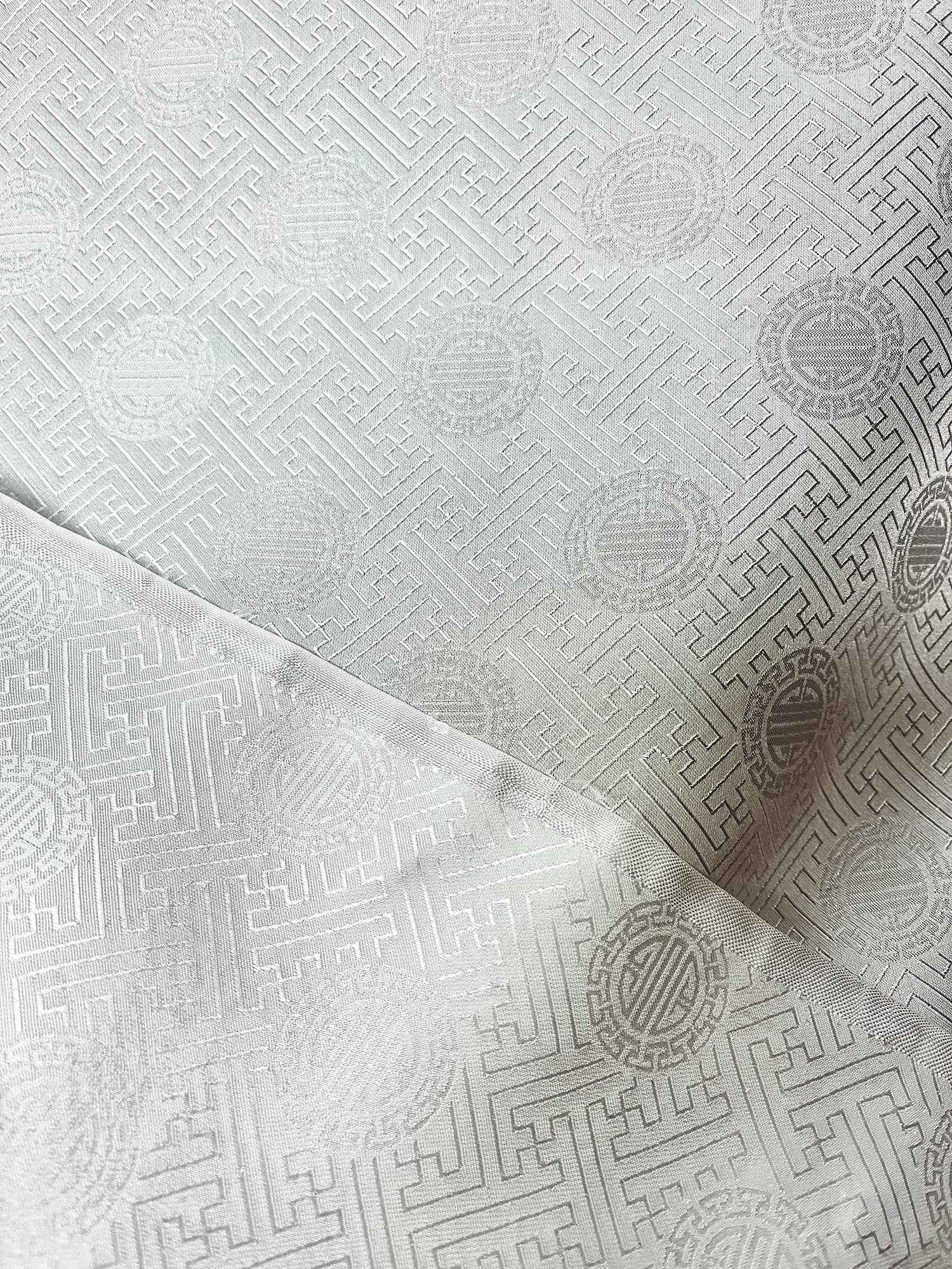 White Silk with Old Design -PURE MULBERRY SILK fabric by the yard - Floral Silk -Luxury Silk - Natural silk - Handmade in VietNam- Silk with Design