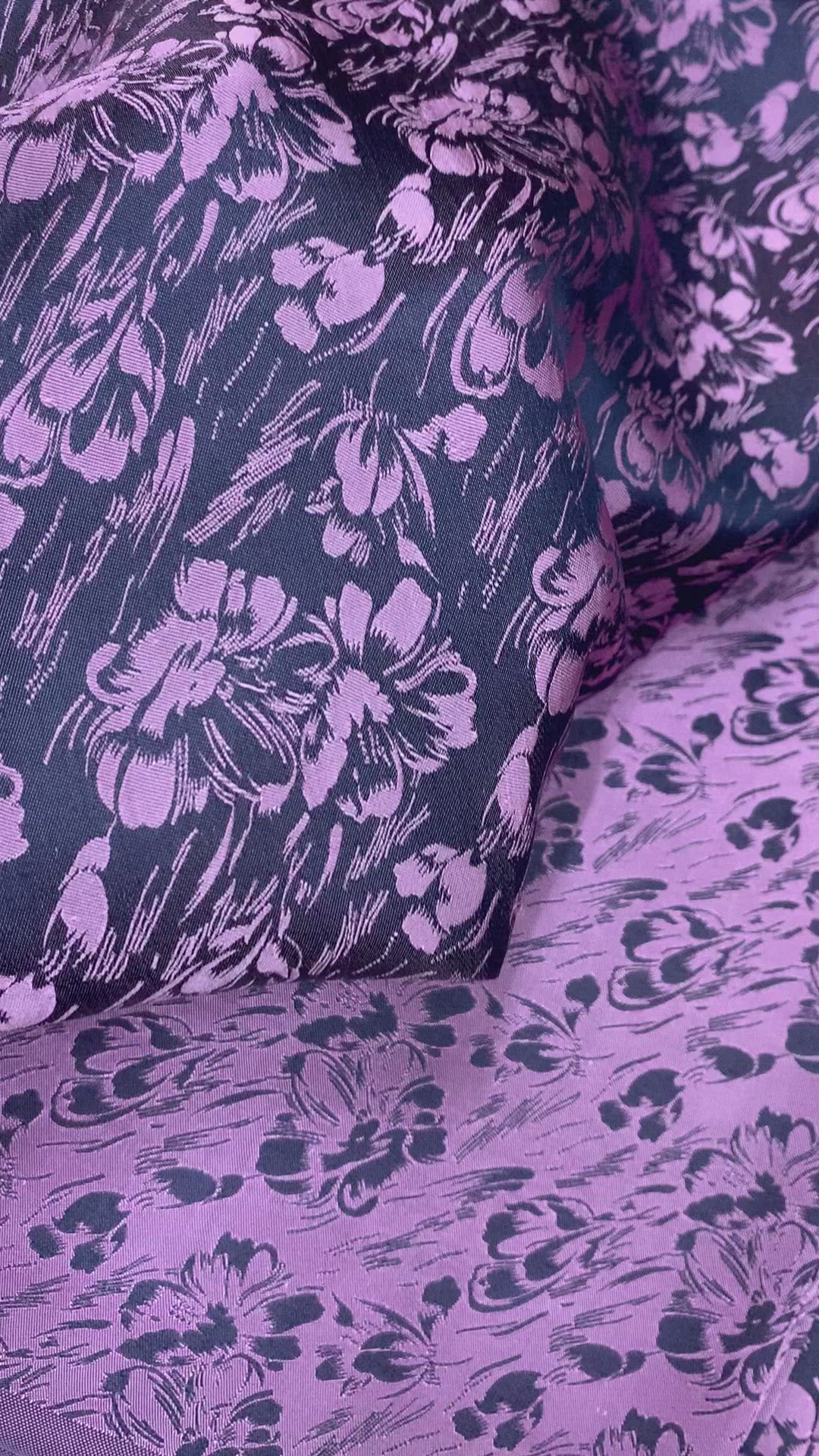 Purple Silk with Flowers - PURE MULBERRY SILK fabric by the yard - Floral Silk -Luxury Silk - Natural silk - Handmade in VietNam