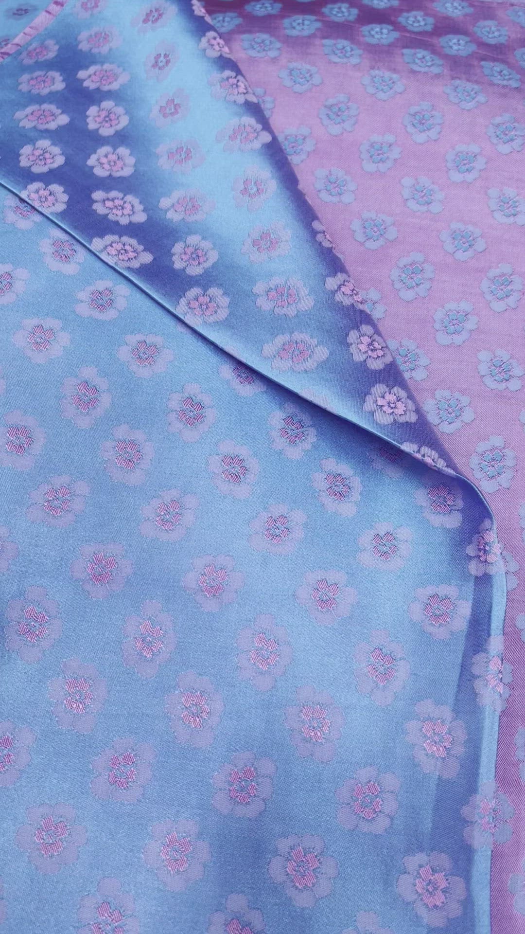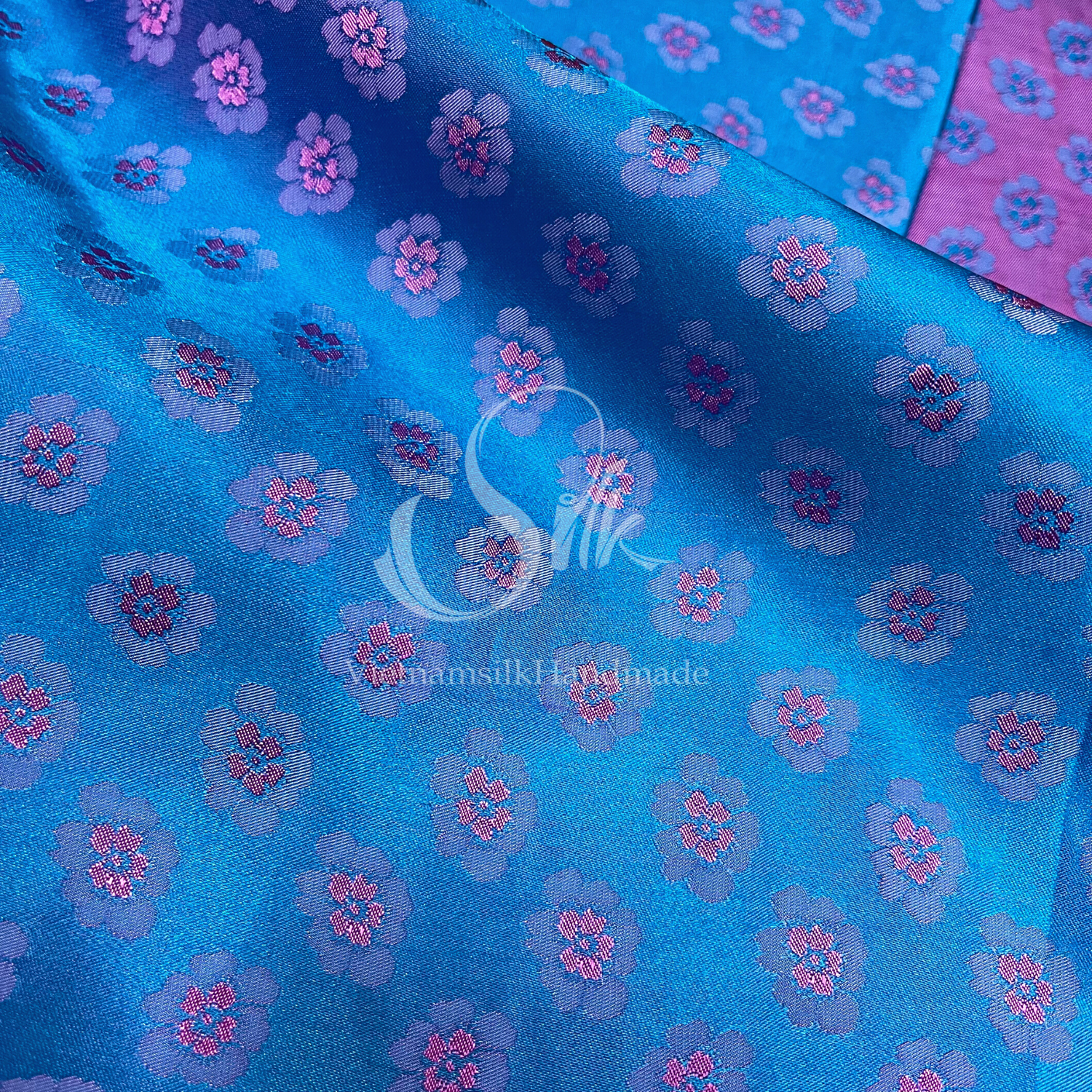 Peach flowers Pattern - Blue Silk with Pink Flowers - PURE MULBERRY SILK fabric by the yard - Floral Silk -Luxury Silk - Natural silk - Handmade in VietNam