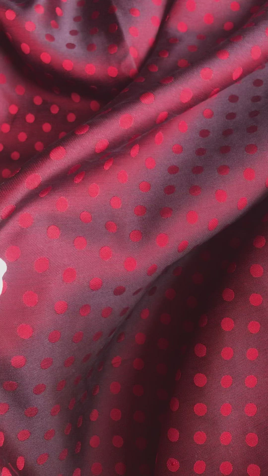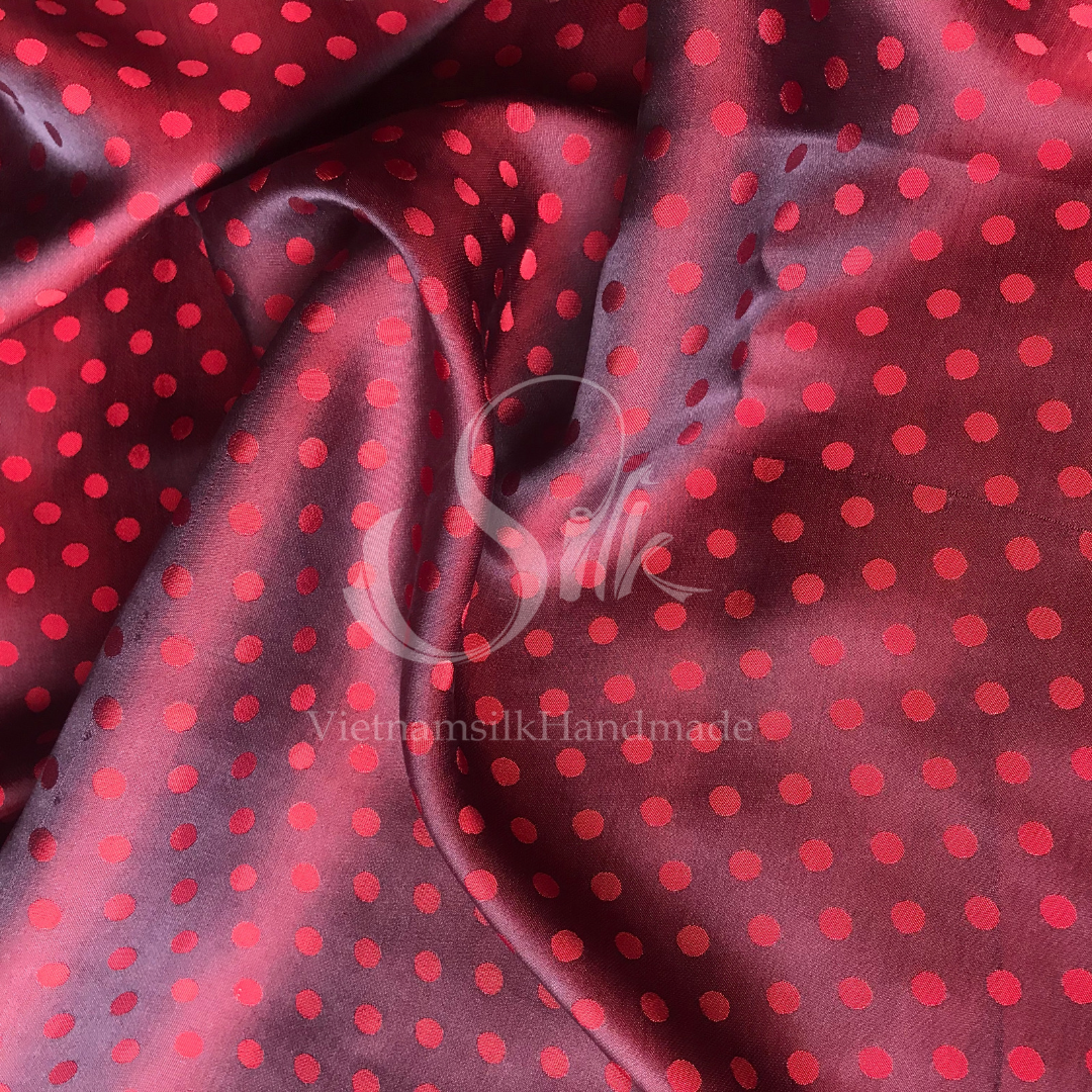 Red Black dot silk - PURE MULBERRY SILK fabric by the yard - Polkadot silk -Luxury Silk - Natural silk - Handmade in VietNam- Silk with Design