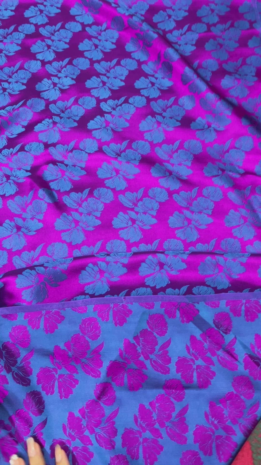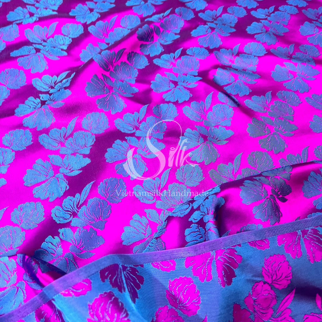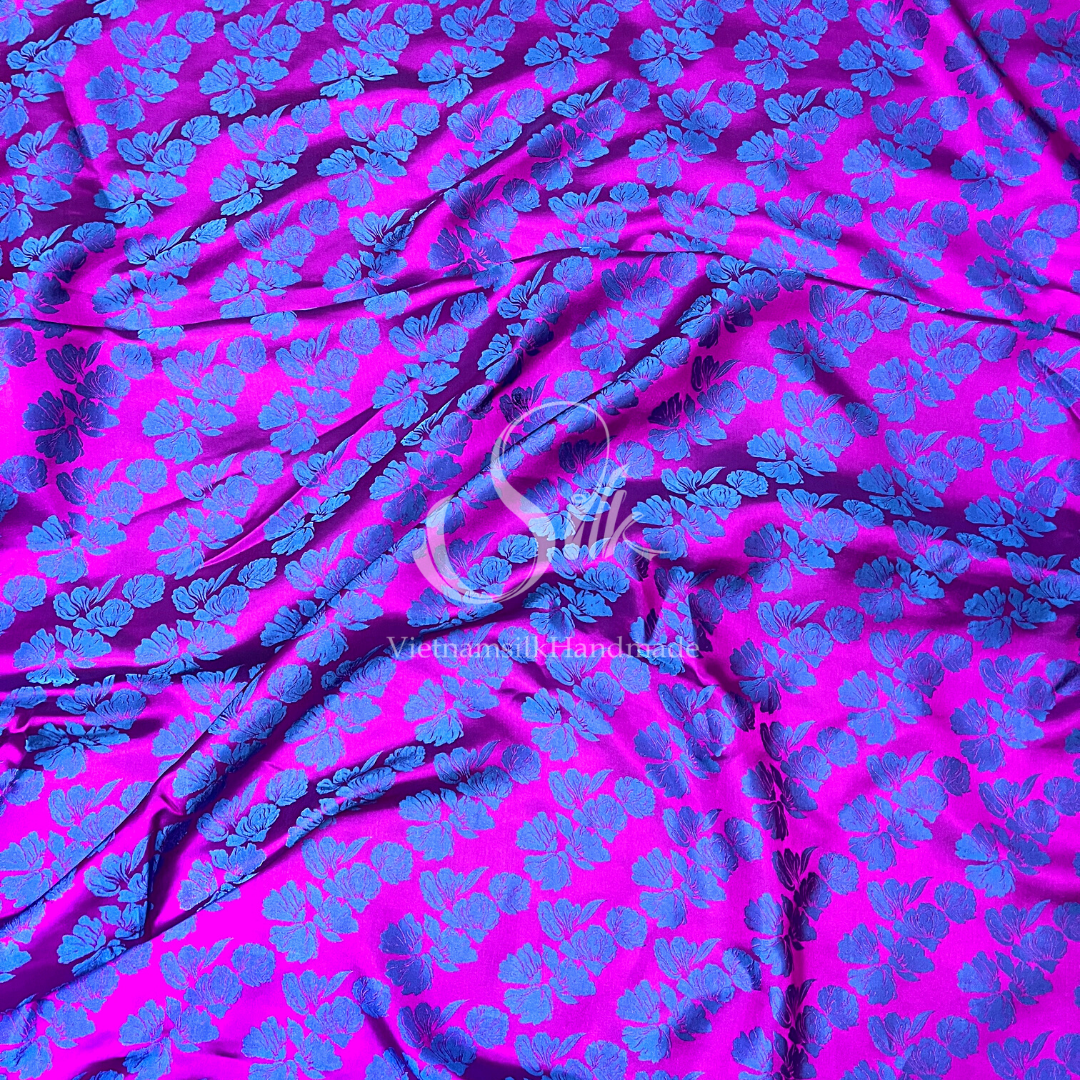 Purple Silk with Big Navy Flowers - PURE MULBERRY SILK fabric by the yard - Floral Silk -Luxury Silk - Natural silk - Handmade in VietNam