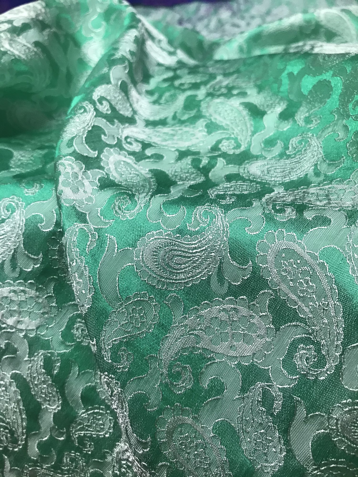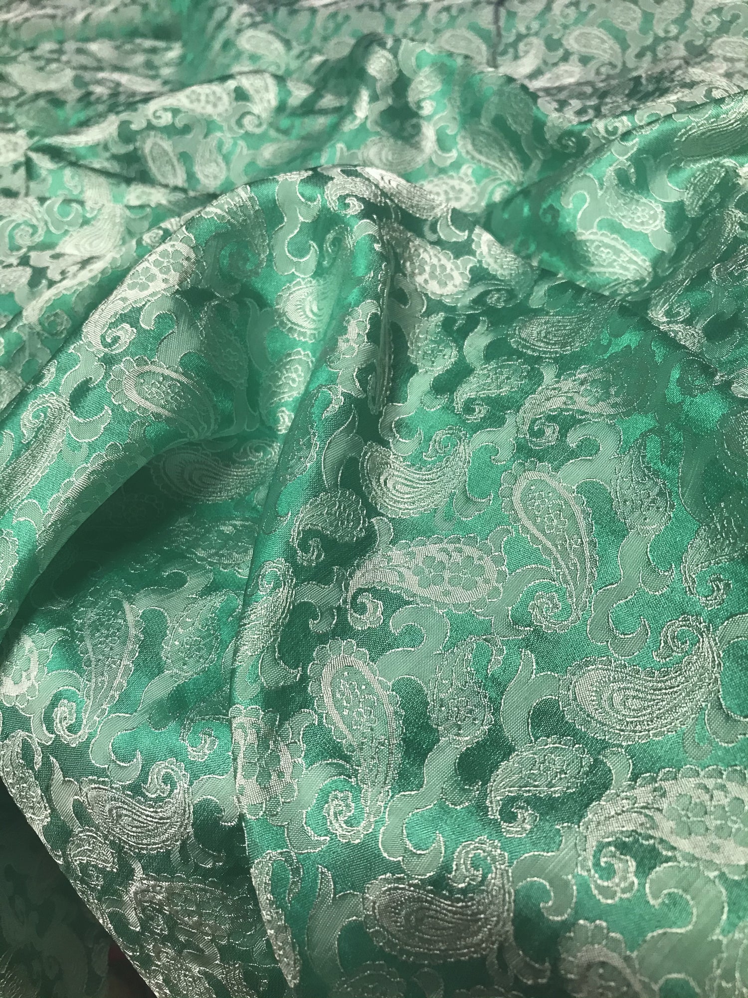Green Mint Paisley Silk - PURE MULBERRY SILK fabric by the yard - Luxury Silk - Natural silk - Handmade in VietNam- Silk with Design