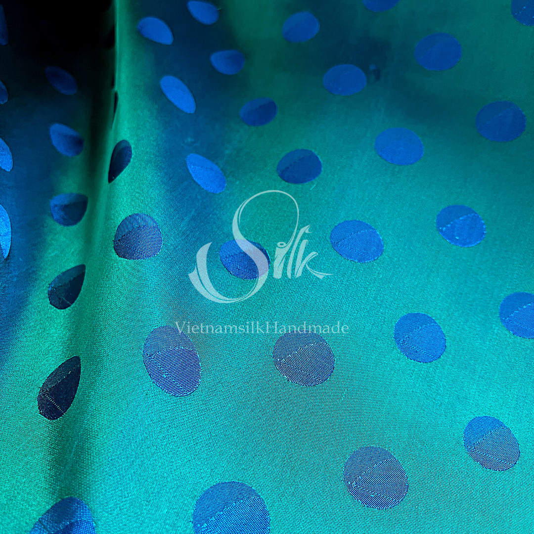 Mallard Green - Peacock Blue - Silk with Big Dots - PURE MULBERRY SILK fabric by the yard - Polkadot silk -Luxury Silk - Natural silk - Handmade in VietNam