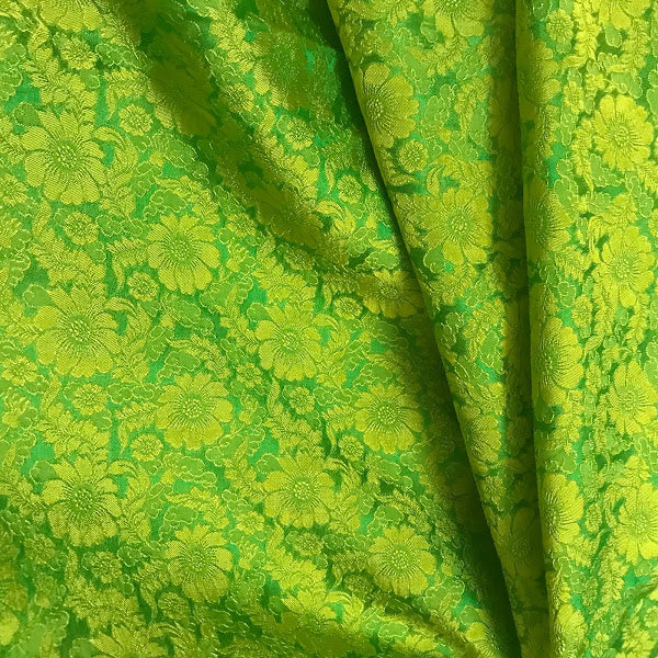 Green silk with Daisy chrysanthemums - PURE MULBERRY SILK fabric by the yard - Floral Silk -Luxury Silk - Natural silk - Handmade in VietNam
