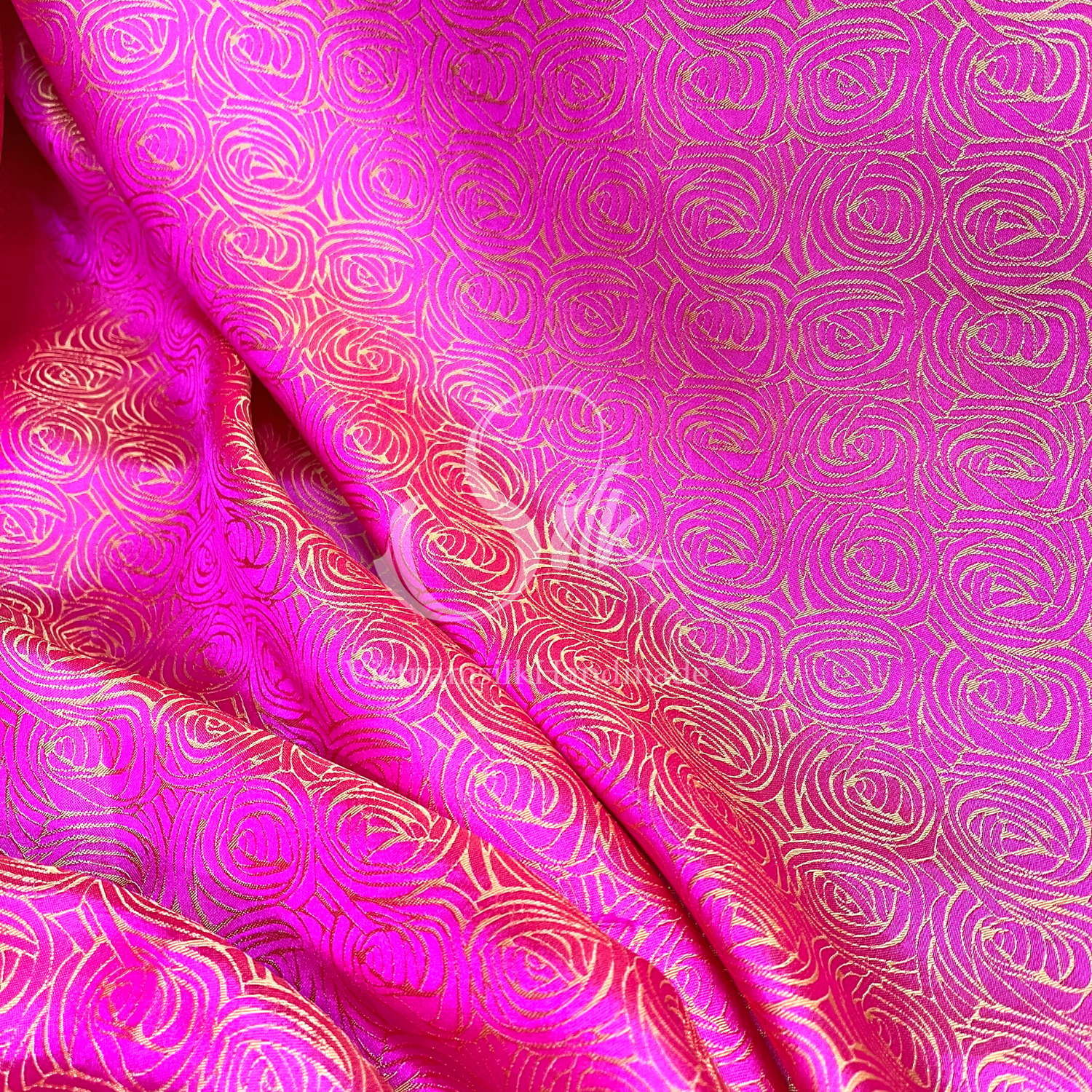 Pink Silk with Yellow Cabbage Flowers -PURE MULBERRY SILK fabric by the yard - Floral Silk -Luxury Silk - Natural silk - Handmade in VietNam