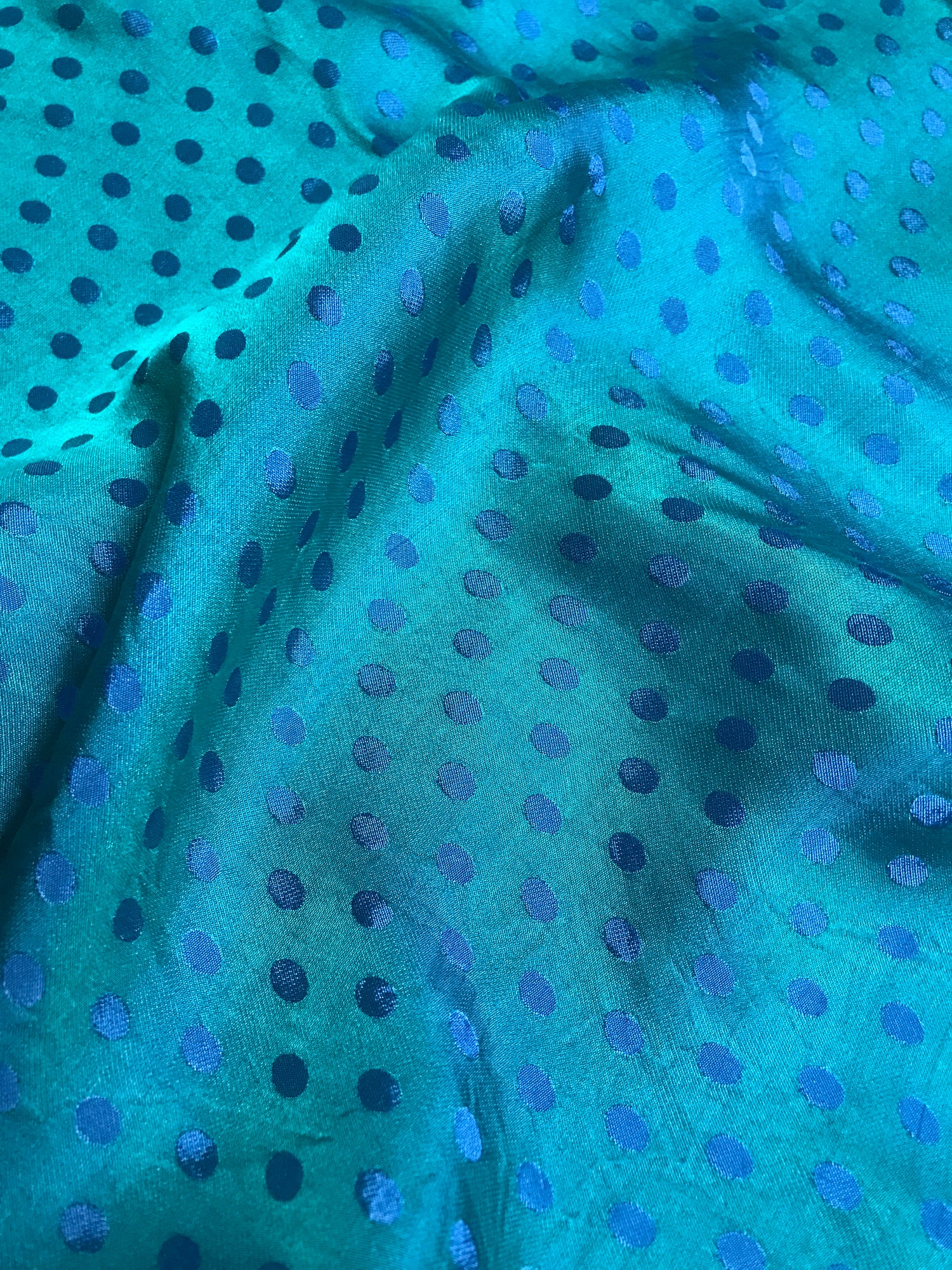 Peacock dot silk - PURE MULBERRY SILK fabric by the yard - Polkadot silk -Luxury Silk - Natural silk - Handmade in VietNam- Silk with Design