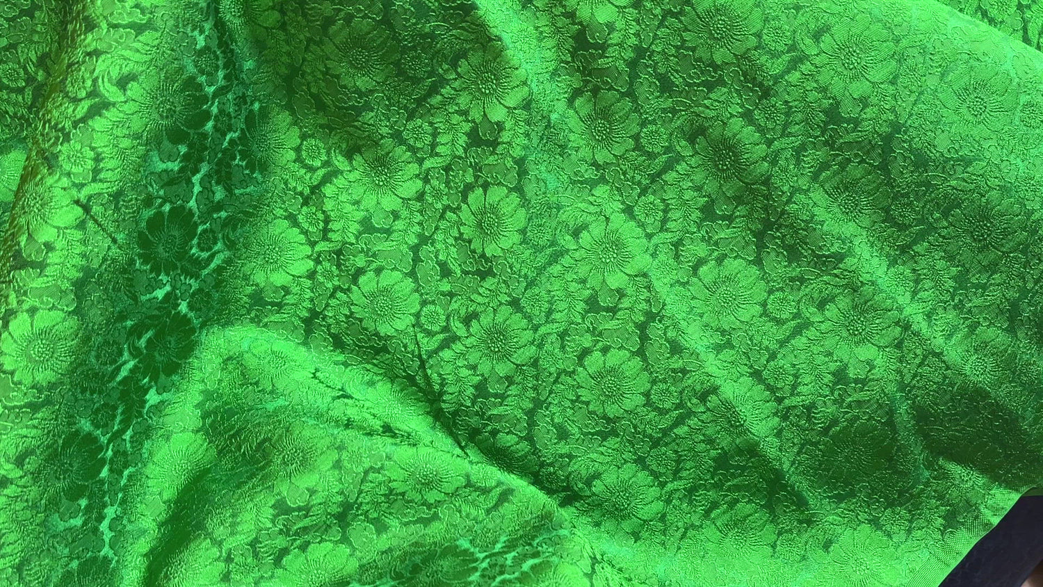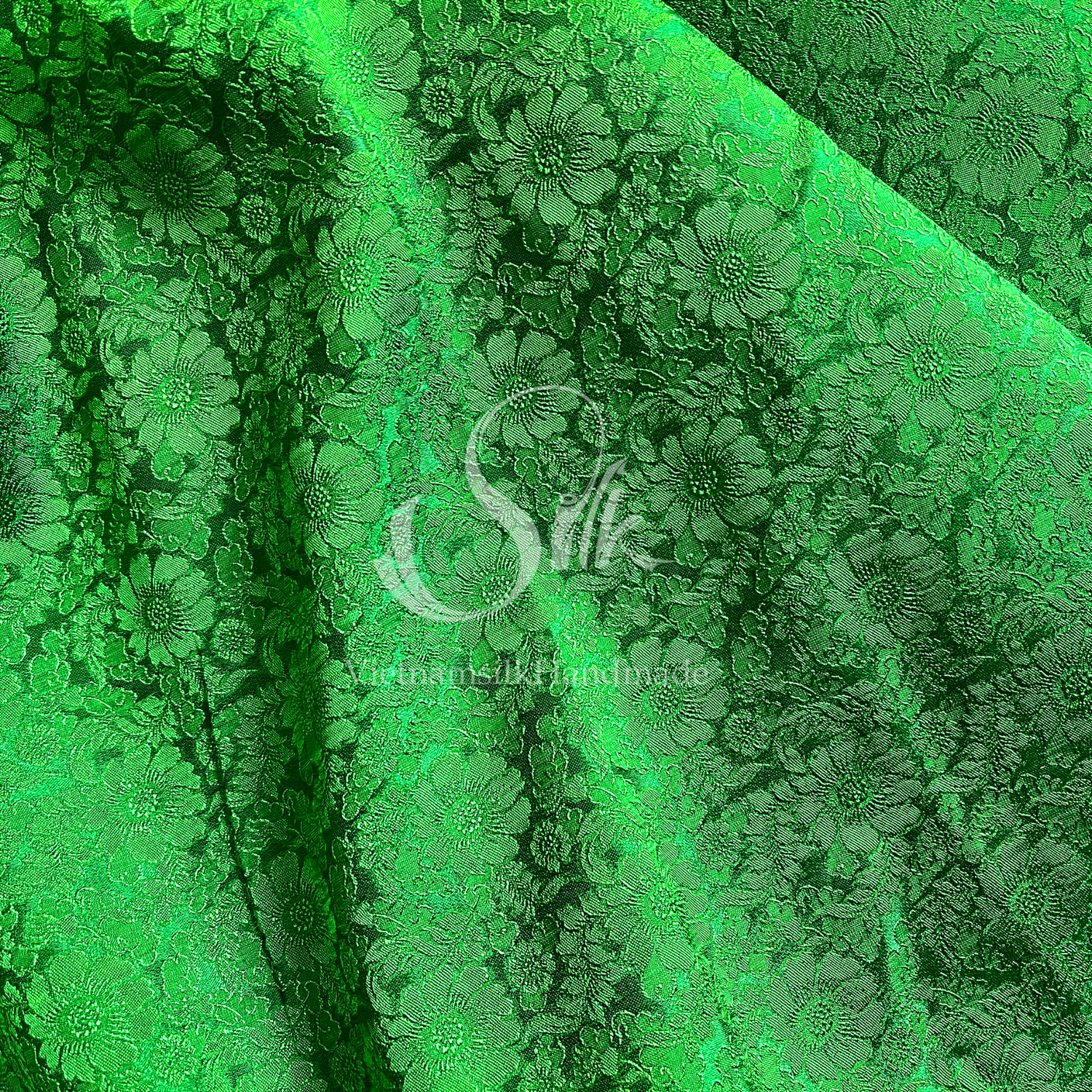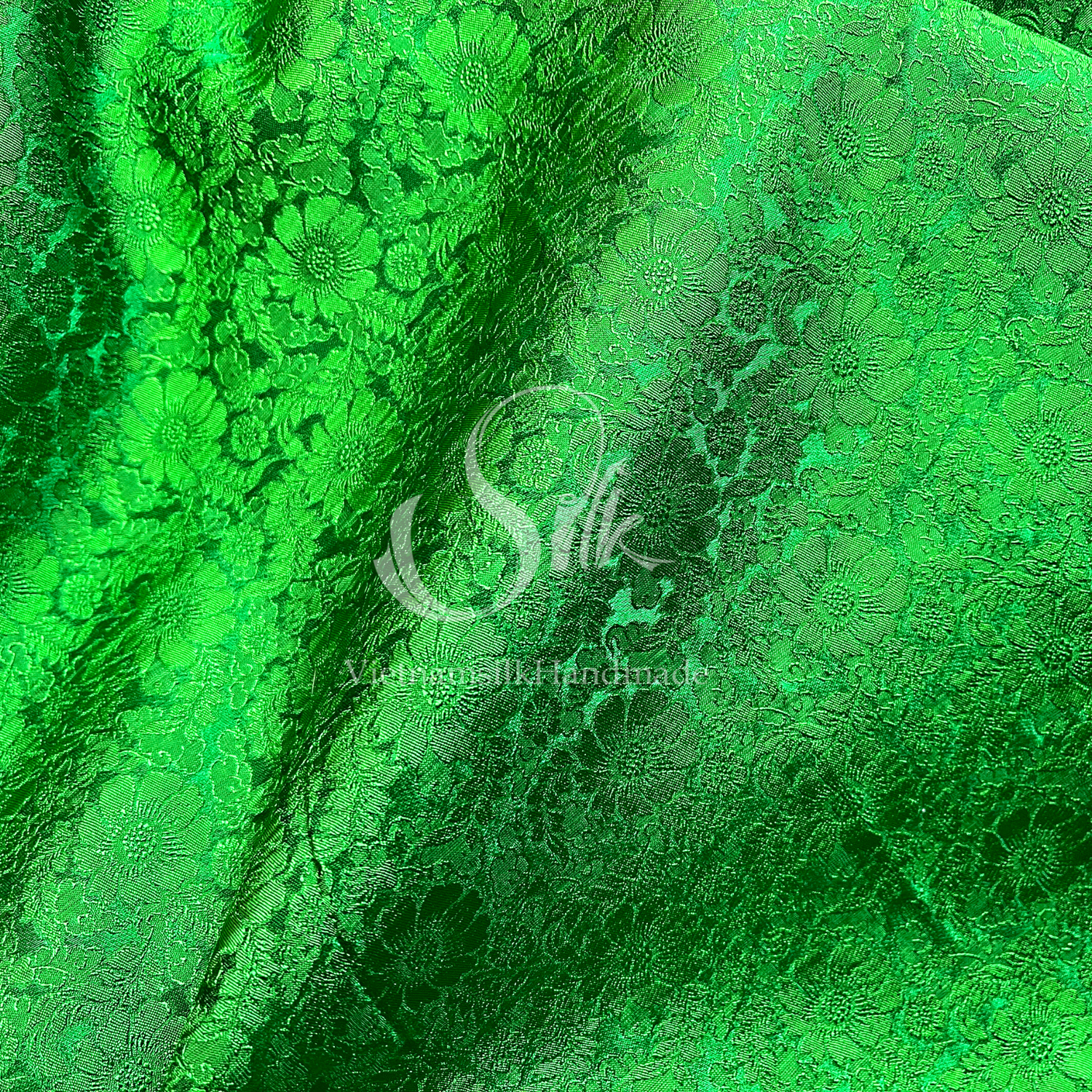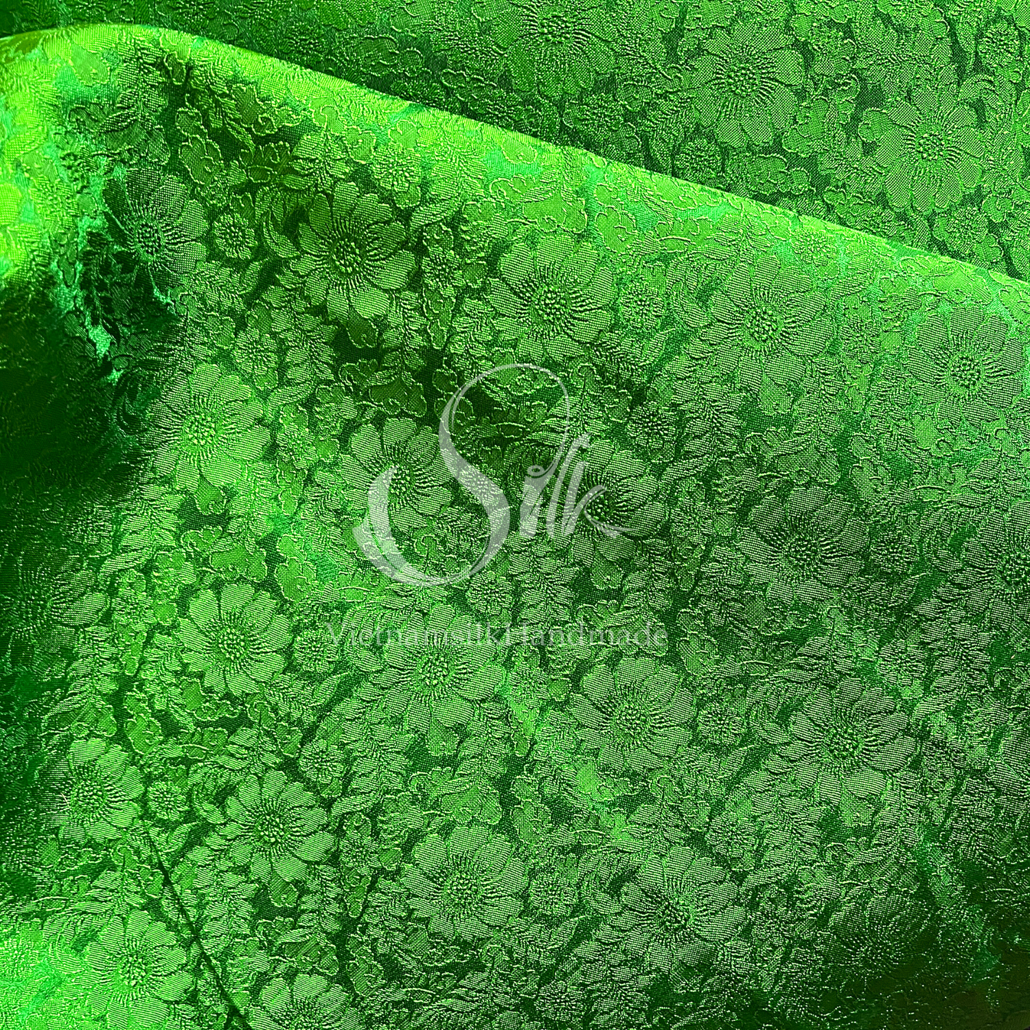 Green Silk with Daisy Flowers -PURE MULBERRY SILK fabric by the yard - Floral Silk -Luxury Silk - Natural silk - Handmade in VietNam