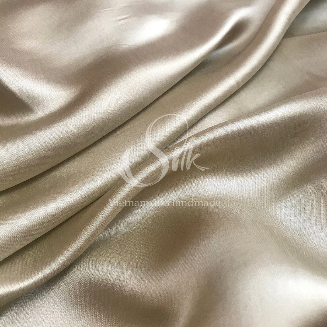 PURE MULBERRY SILK fabric by the yard - Luxury silk fabric - Natural silk - Handmade in VietNam - Light Brown Bronze silk