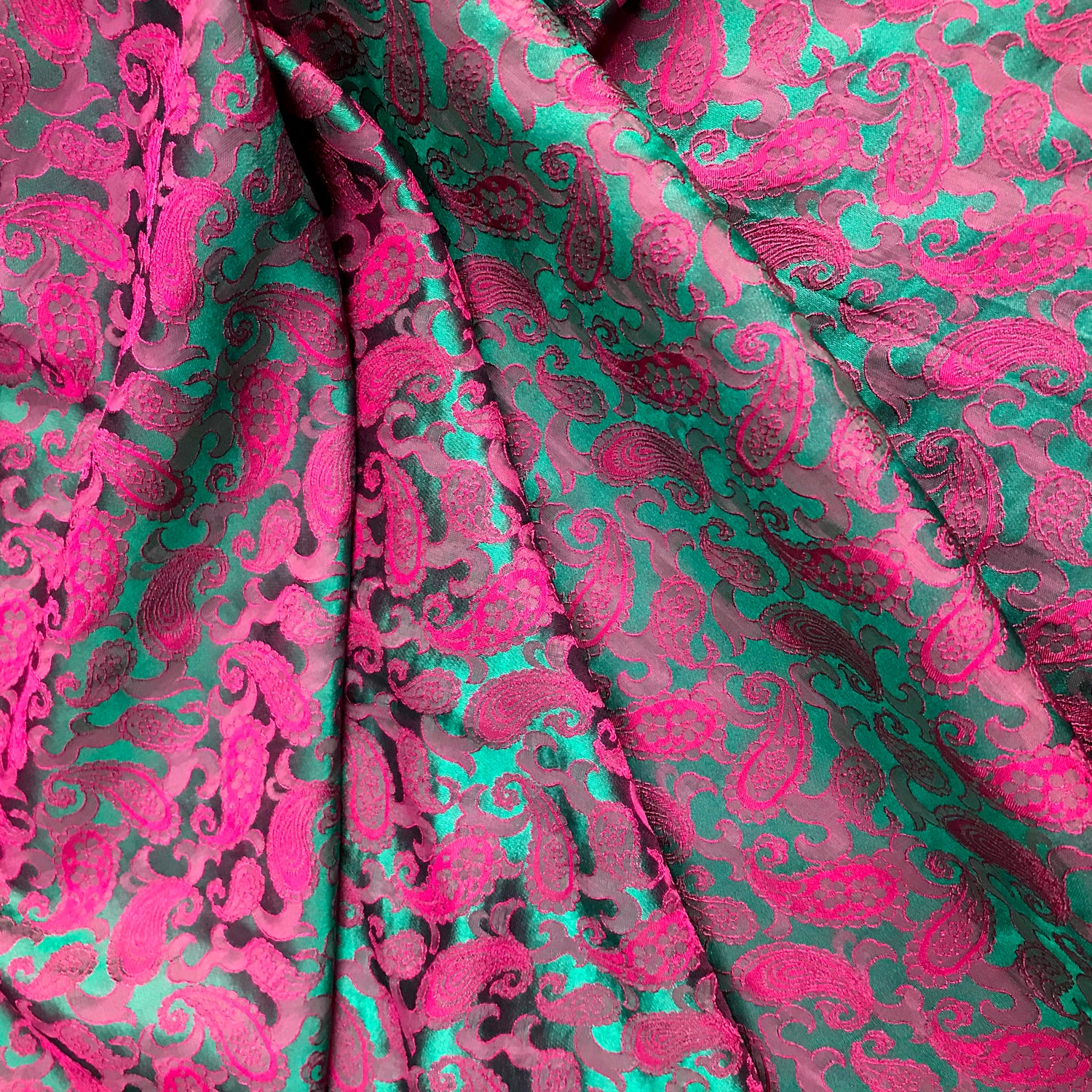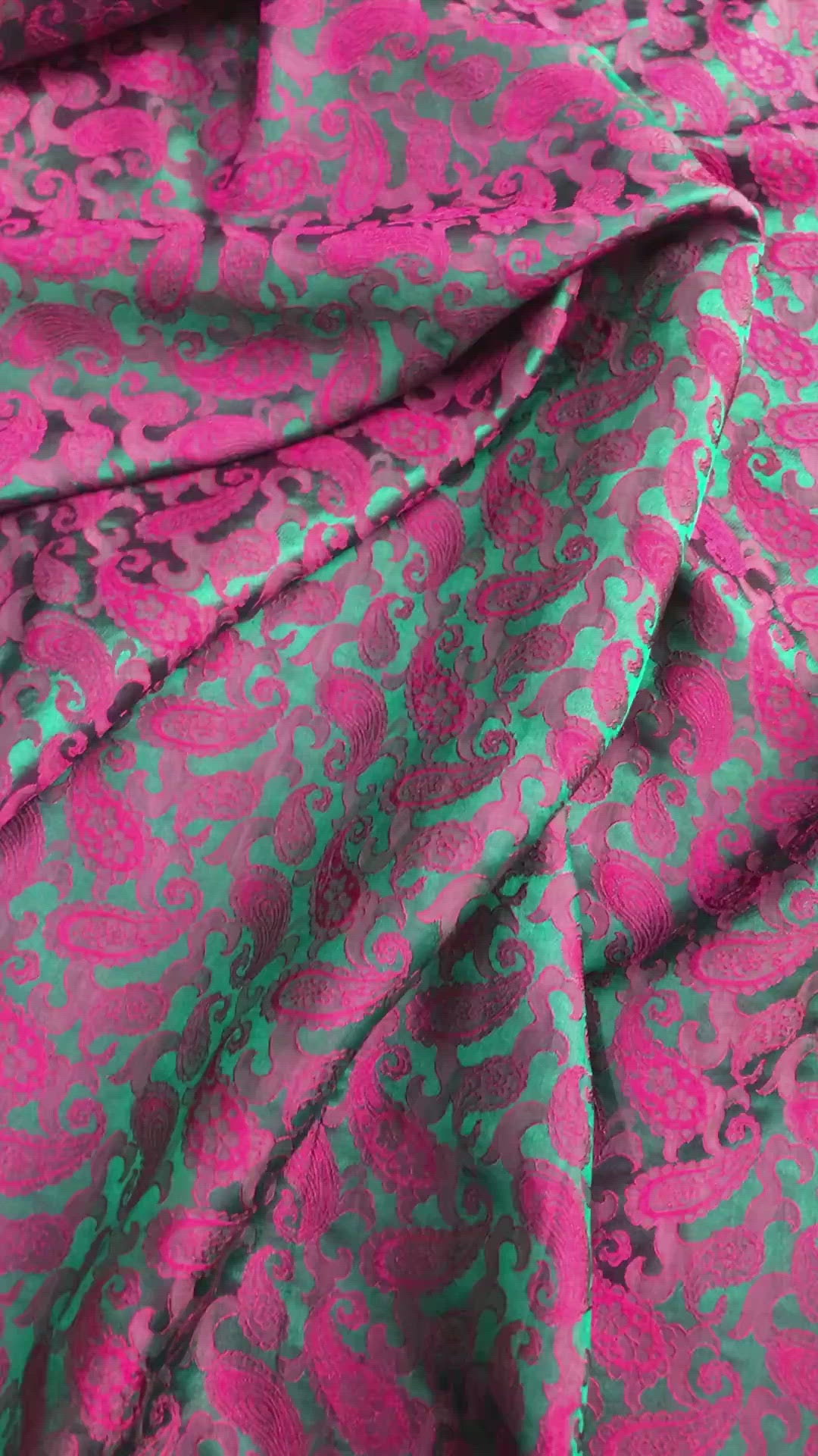 Green silk with Pink Paisley design - PURE MULBERRY SILK fabric by the yard - Luxury Silk - Natural silk - Handmade in VietNam- Silk with Design