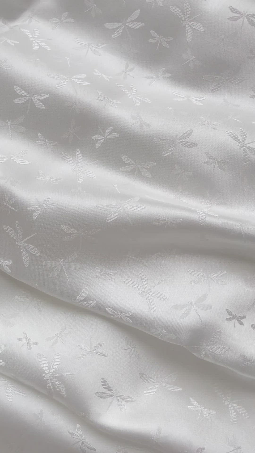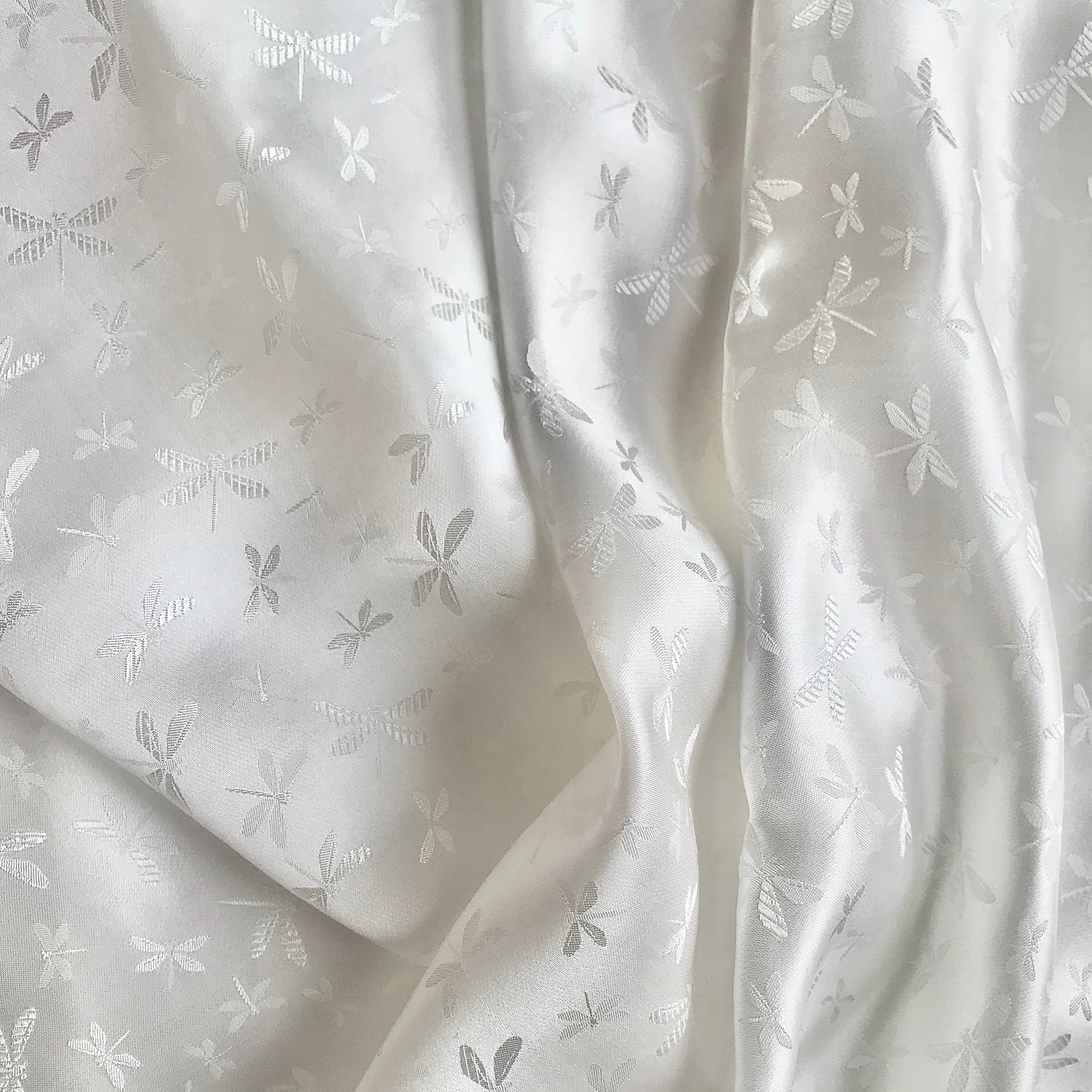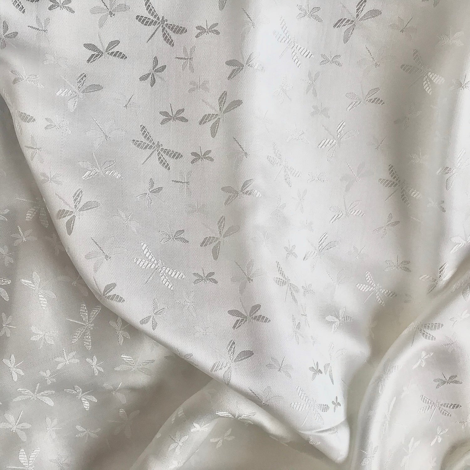 White silk with Dragonfly patterns - PURE MULBERRY SILK fabric by the yard - Gragonfly silk -Luxury Silk - Natural silk - Handmade in VietNam