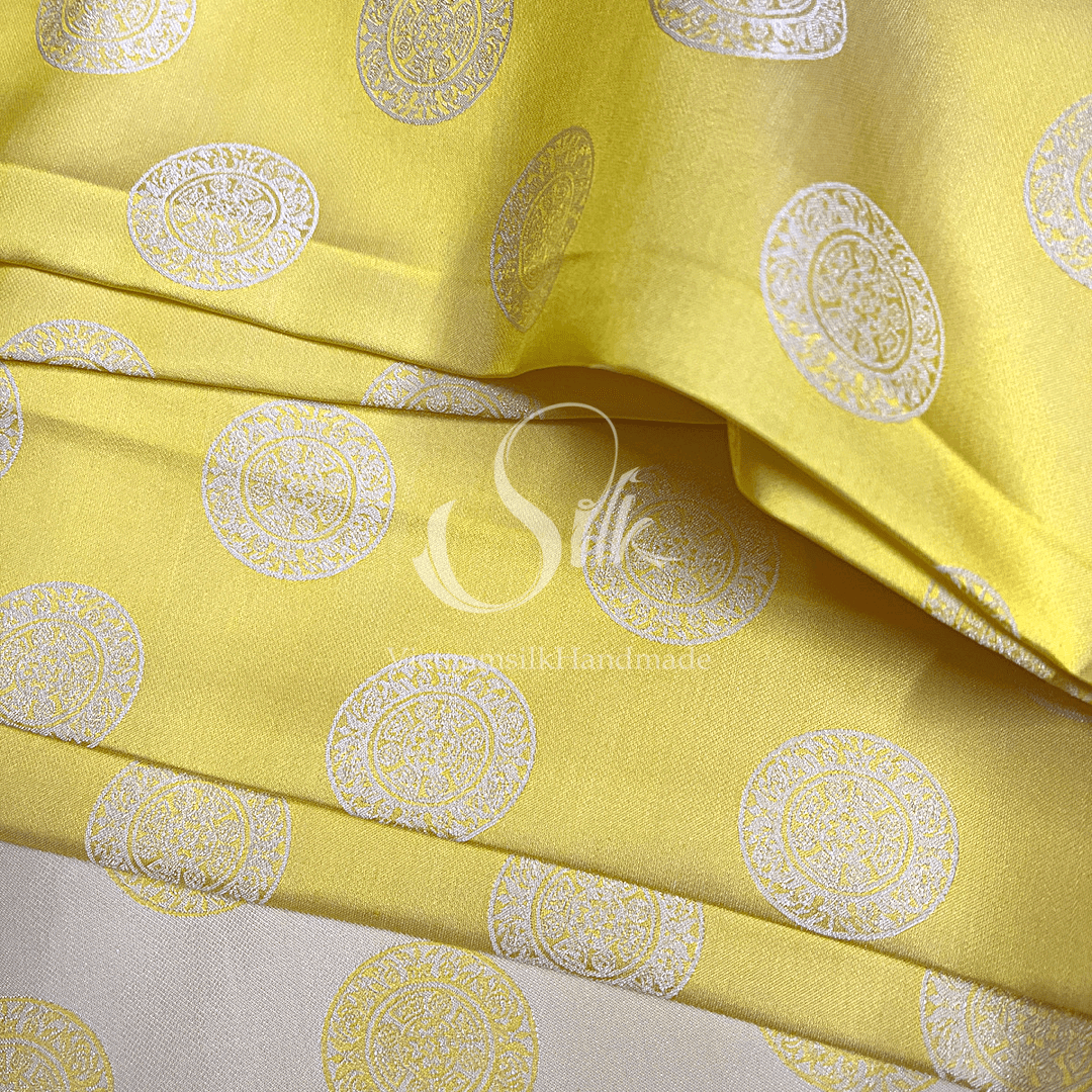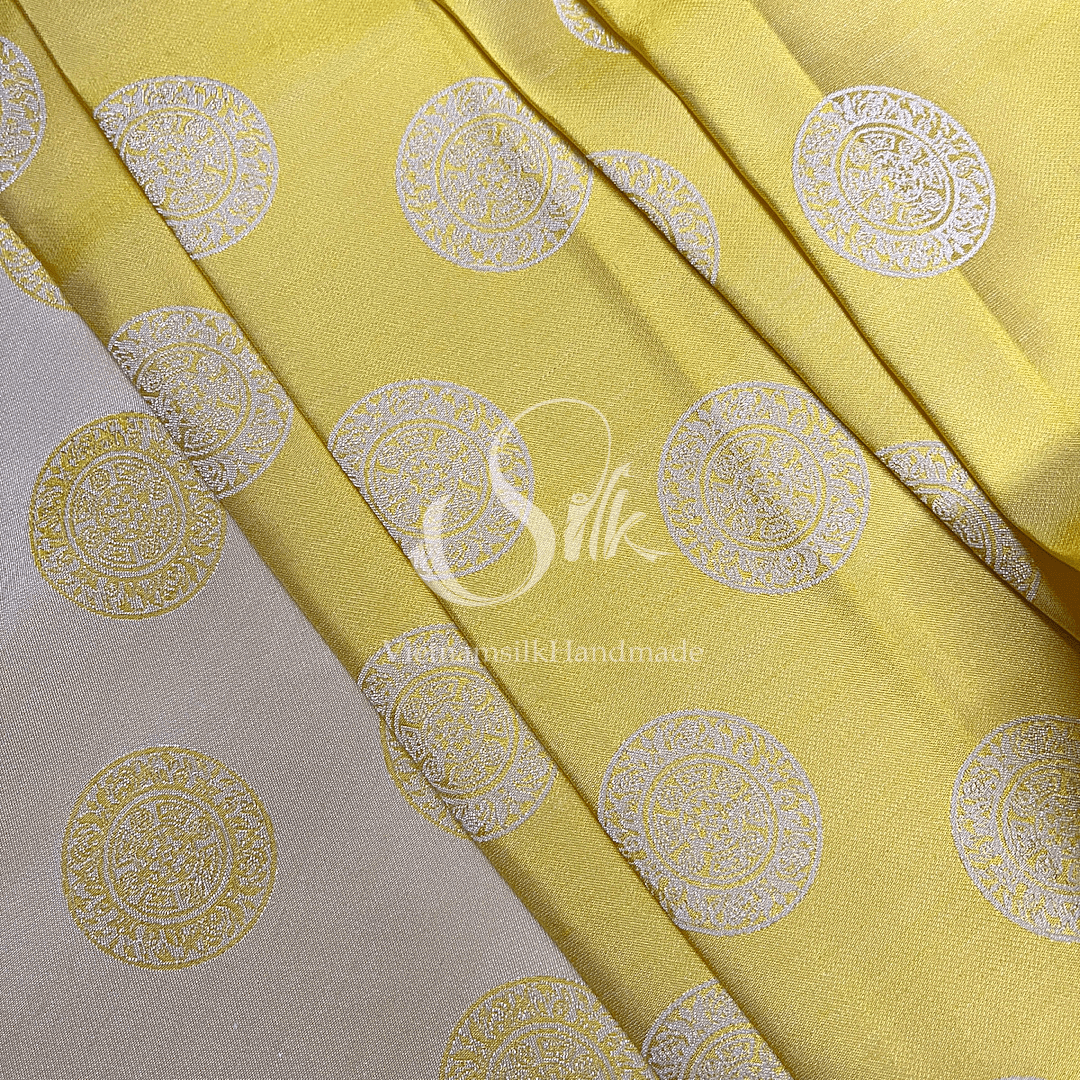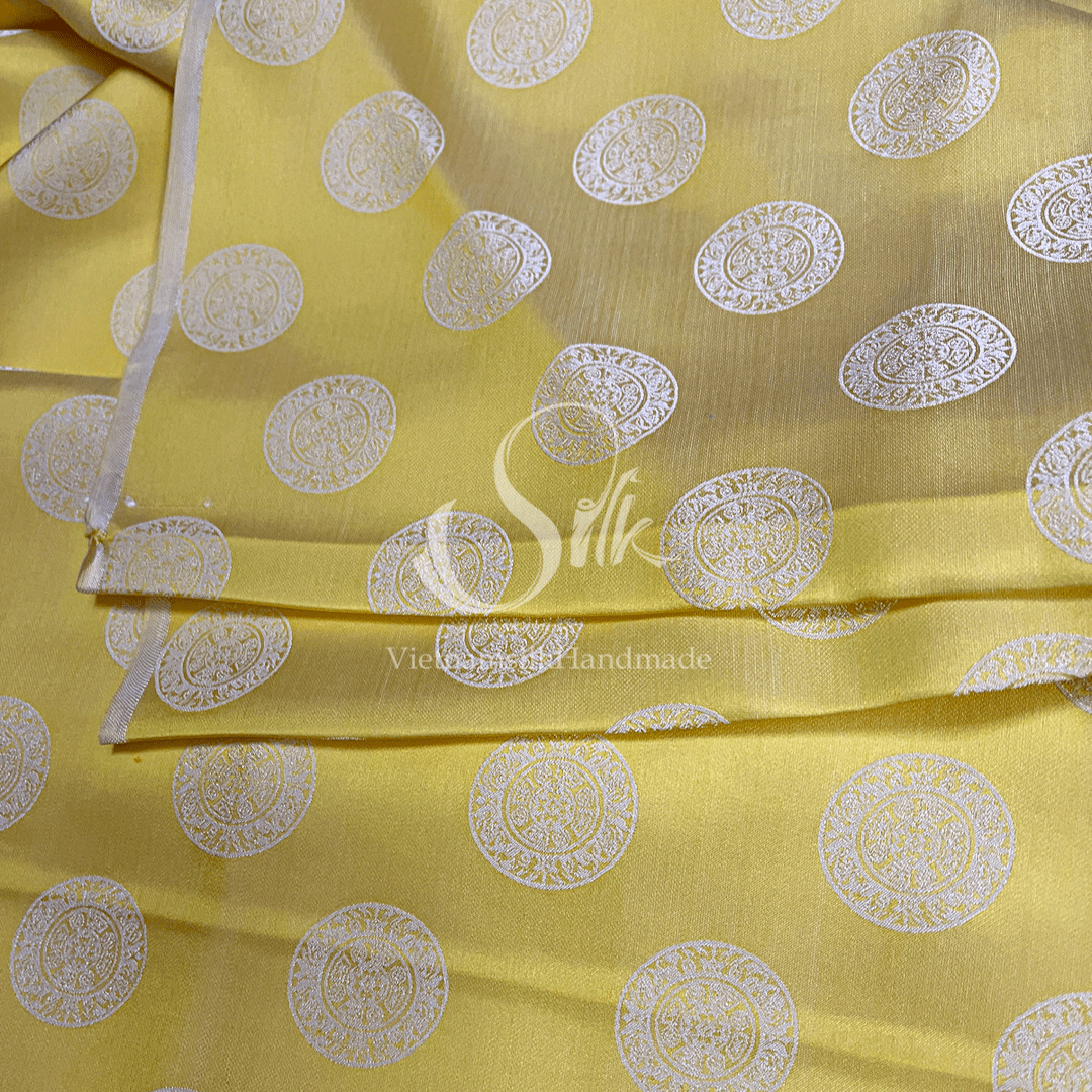 Yellow Silk with Coin patterns - PURE MULBERRY SILK fabric by the yard - Floral Silk -Luxury Silk - Natural silk - Handmade in VietNam- Silk with Design