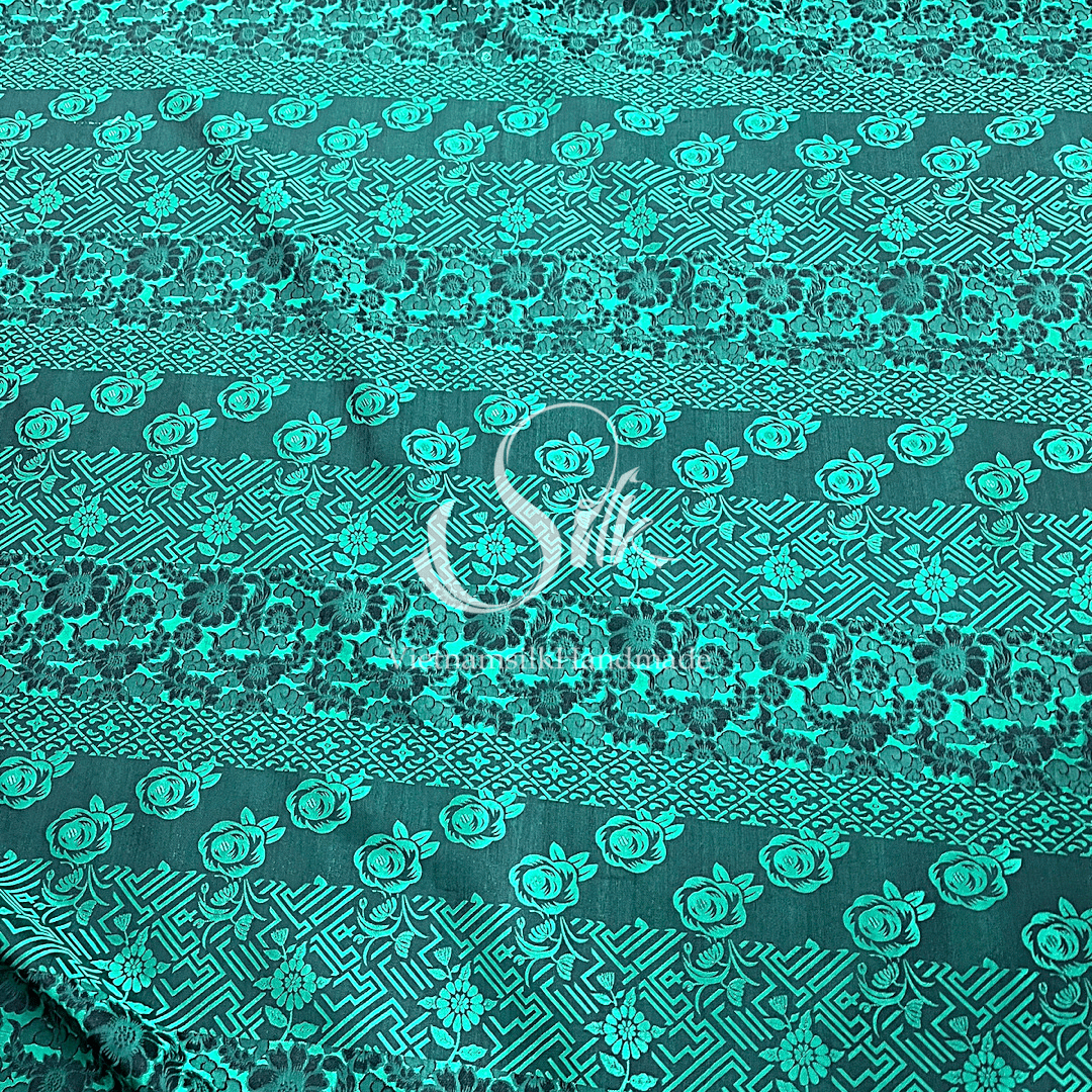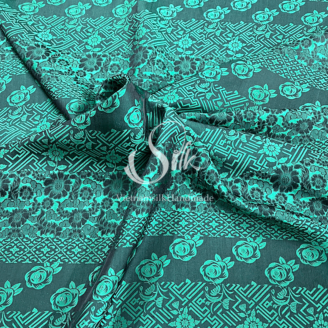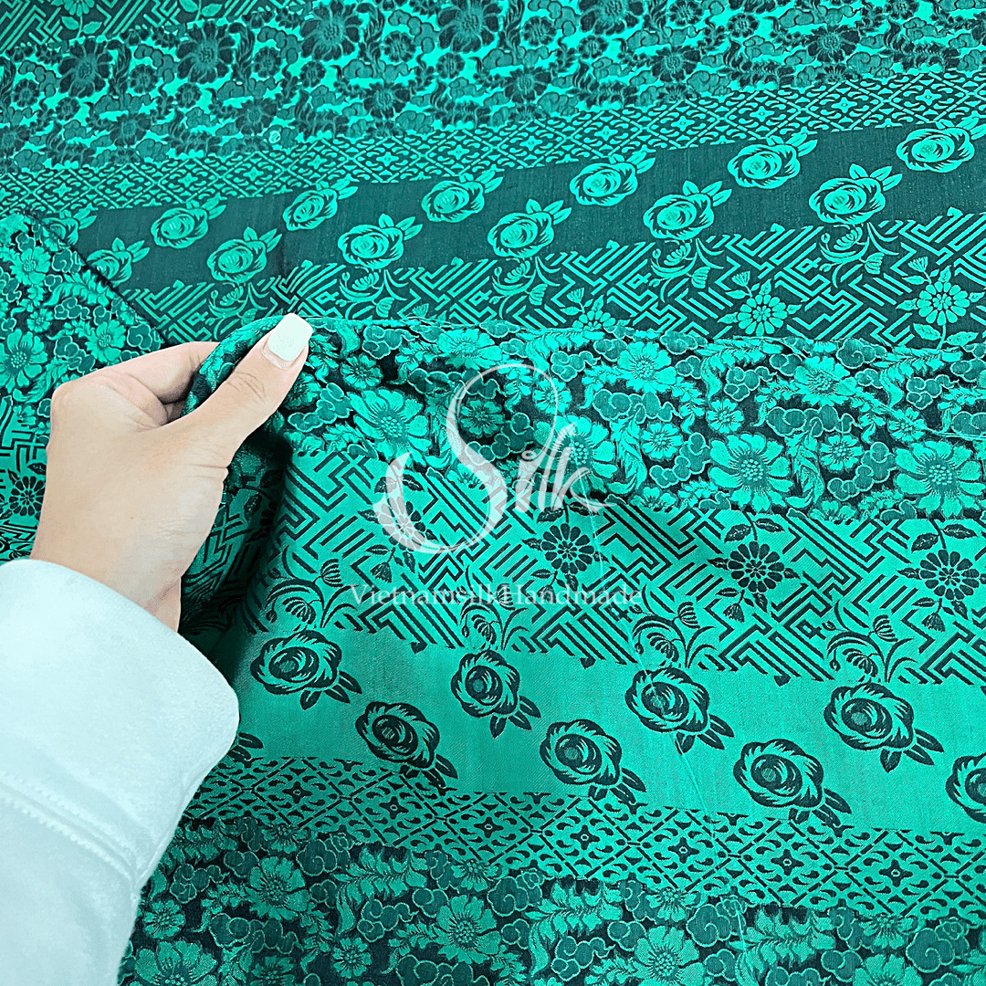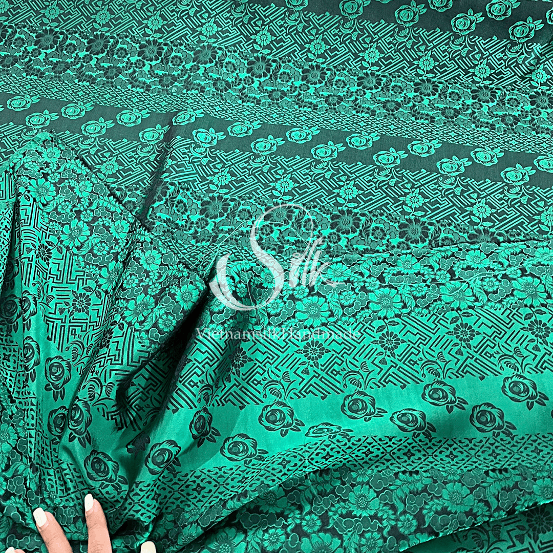 Green Silk with Mixed Flowers - PURE MULBERRY SILK fabric by the yard - Floral Silk -Luxury Silk - Natural silk - Handmade in VietNam- Silk with Design