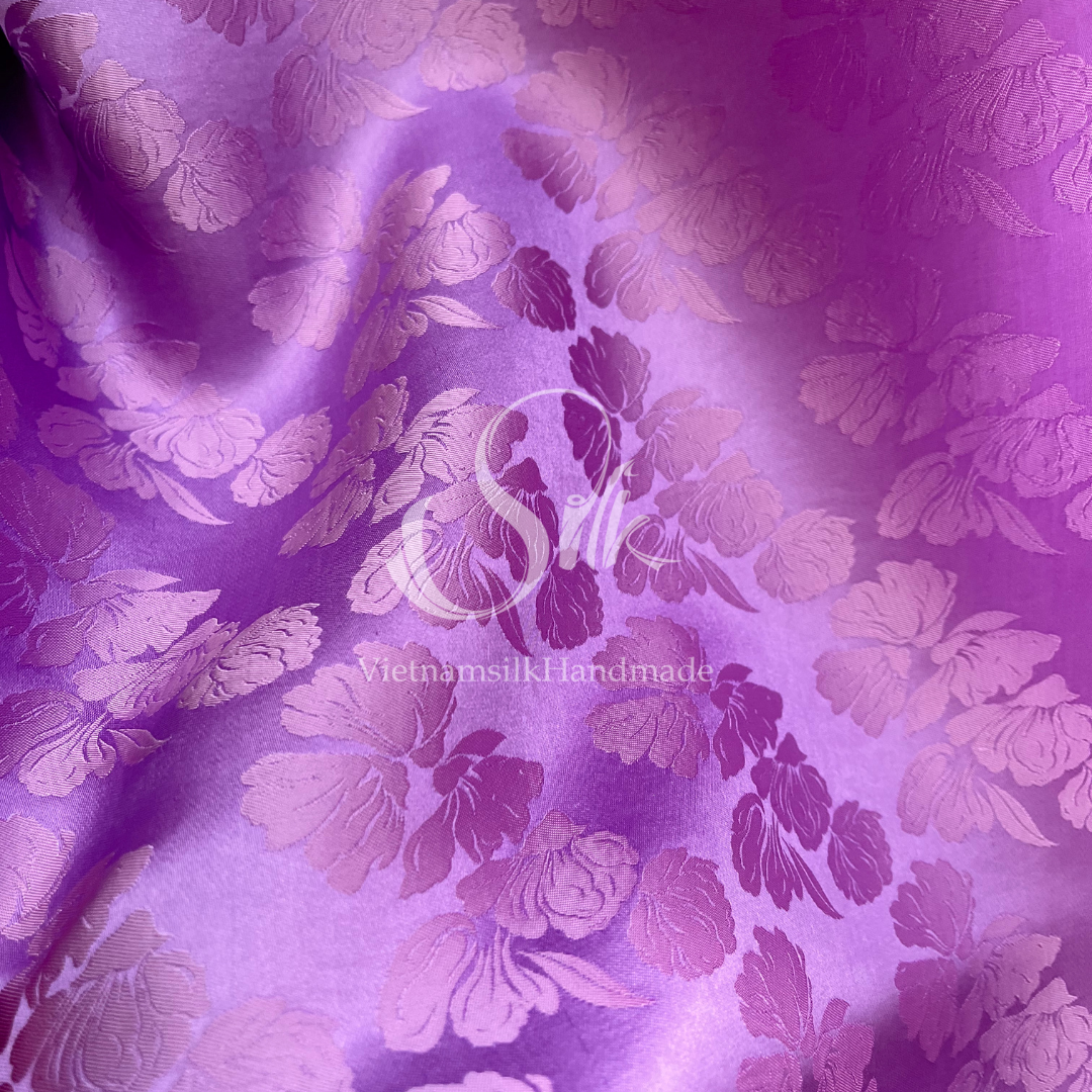 Purple Silk with Big Flowers - PURE MULBERRY SILK fabric by the yard - Floral Silk -Luxury Silk - Natural silk - Handmade in VietNam
