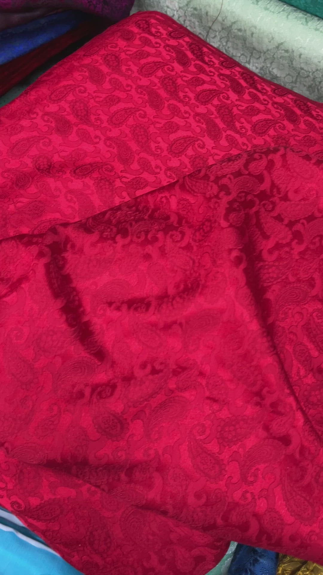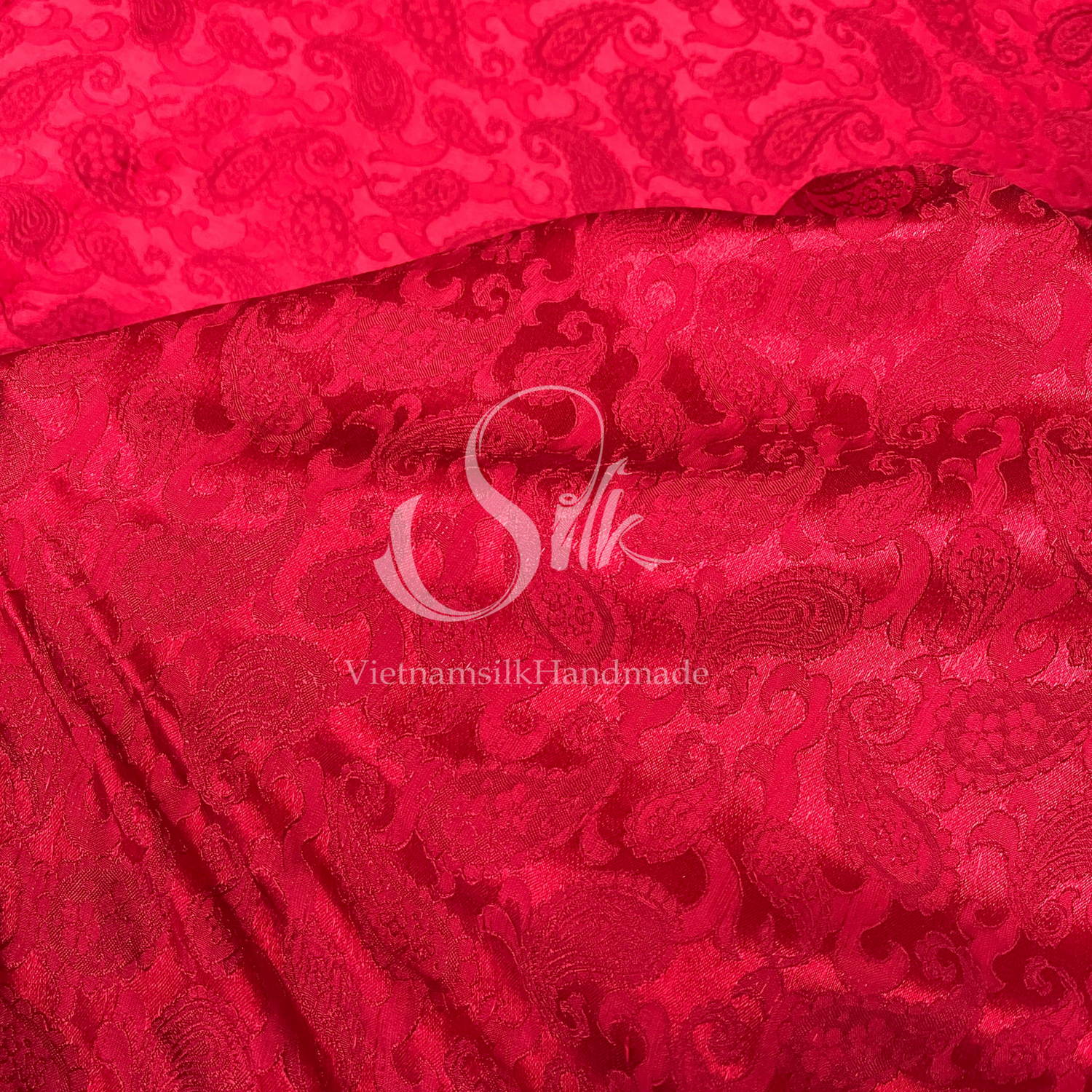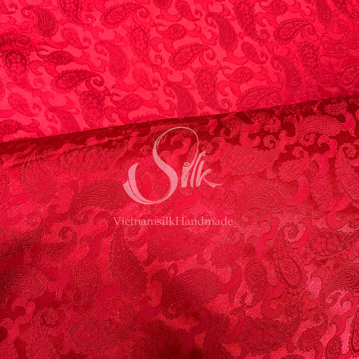 Red silk with Paisley design - PURE MULBERRY SILK fabric by the yard - Luxury Silk - Natural silk - Handmade in VietNam- Silk with Design