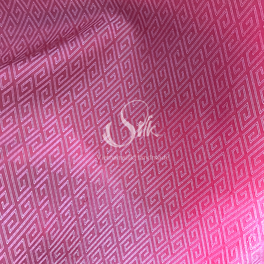 Pink Silk with Plaid pattern - PURE MULBERRY SILK fabric by the yard -Luxury Silk - Natural silk - Handmade in VietNam- Silk with Design