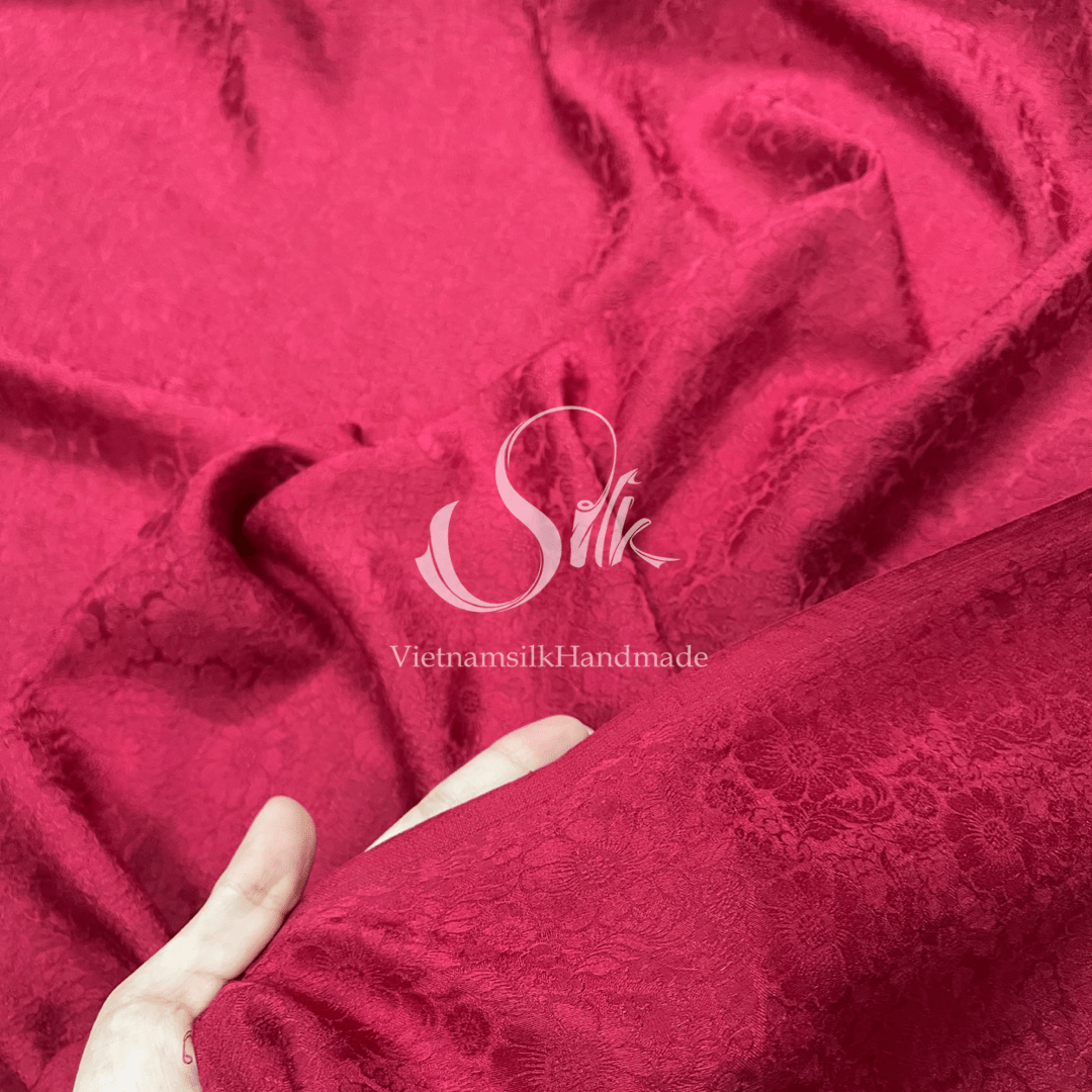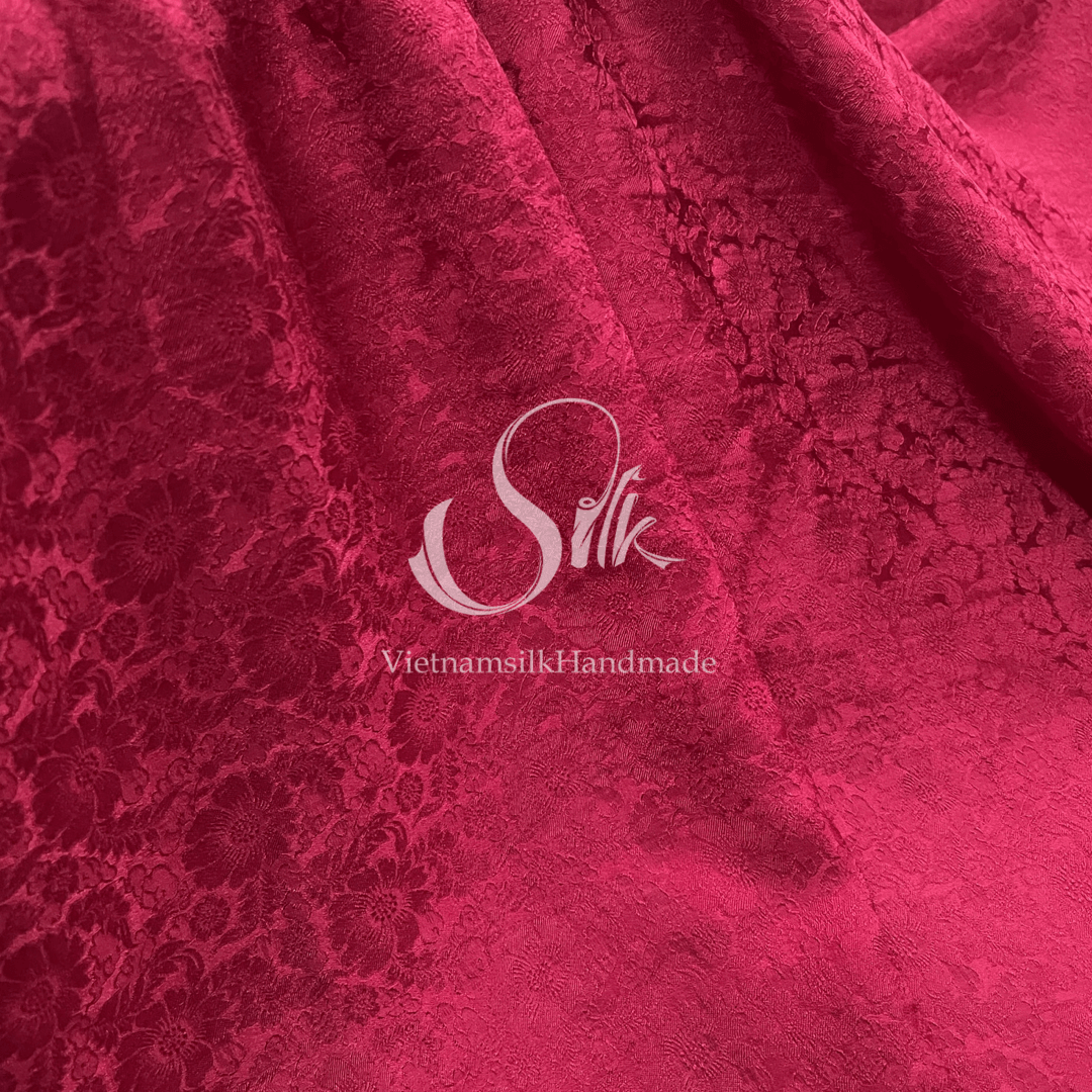 Premium Silk Fabric - Red Silk with Flowers - 100% PURE MULBERRY SILK fabric by the yard - Floral Silk - Luxury Silk - Natural silk - Handmade in VietNam