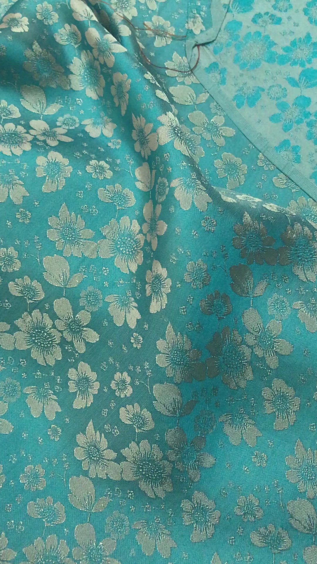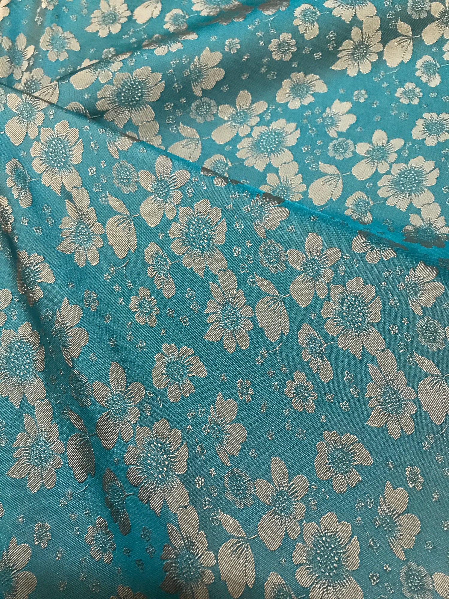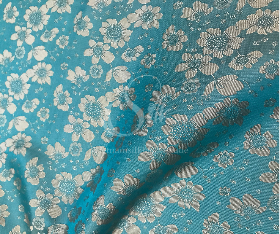 PURE MULBERRY SILK fabric by the yard - Blue silk with flowers - Floral Silk -Luxury Silk - Natural silk - Handmade in VietNam- Silk with Design