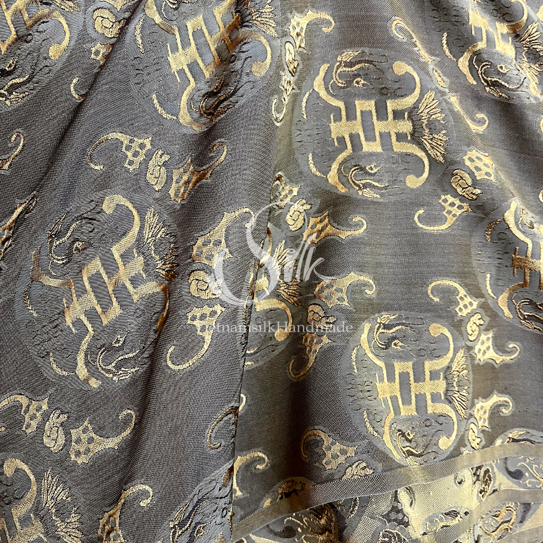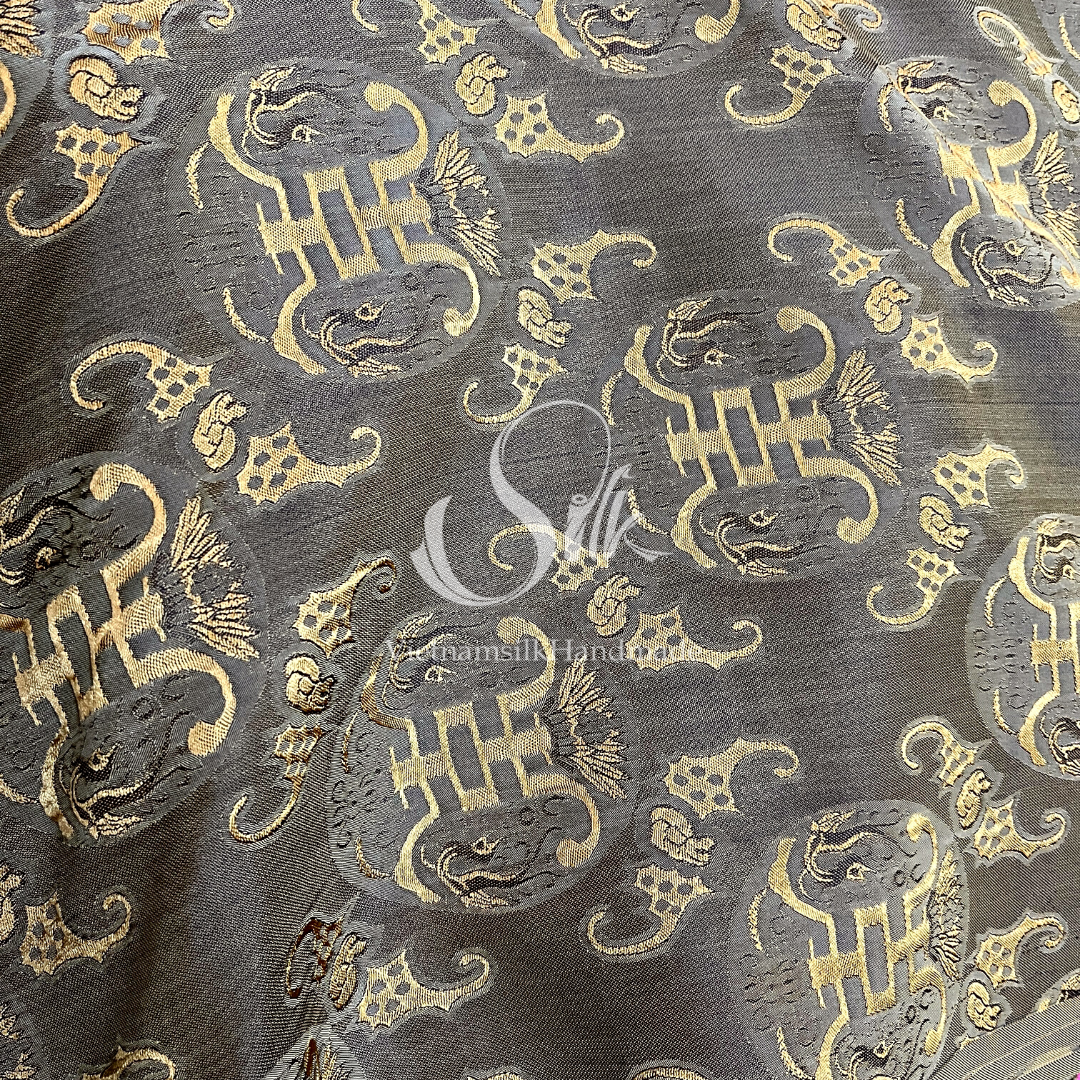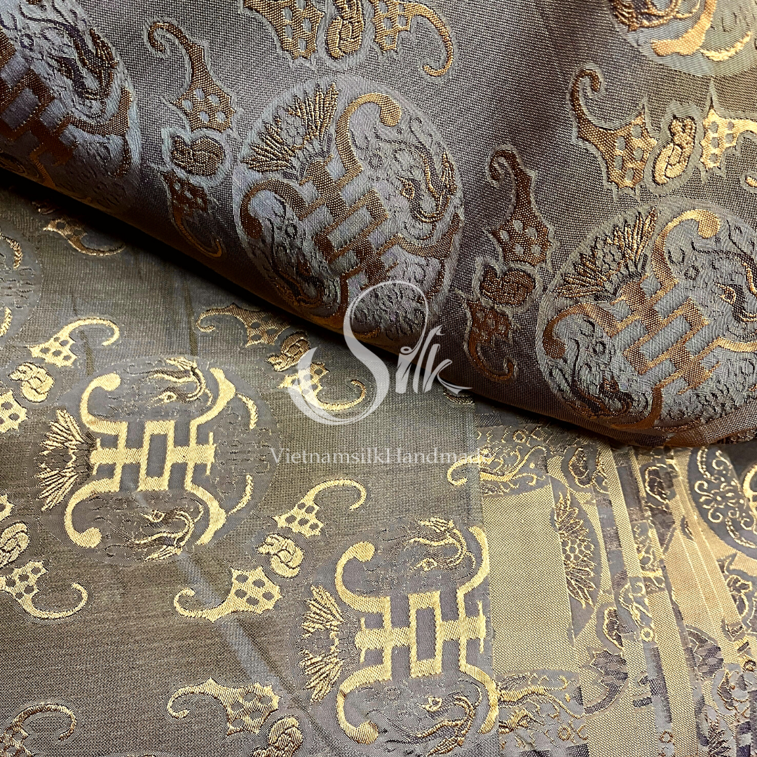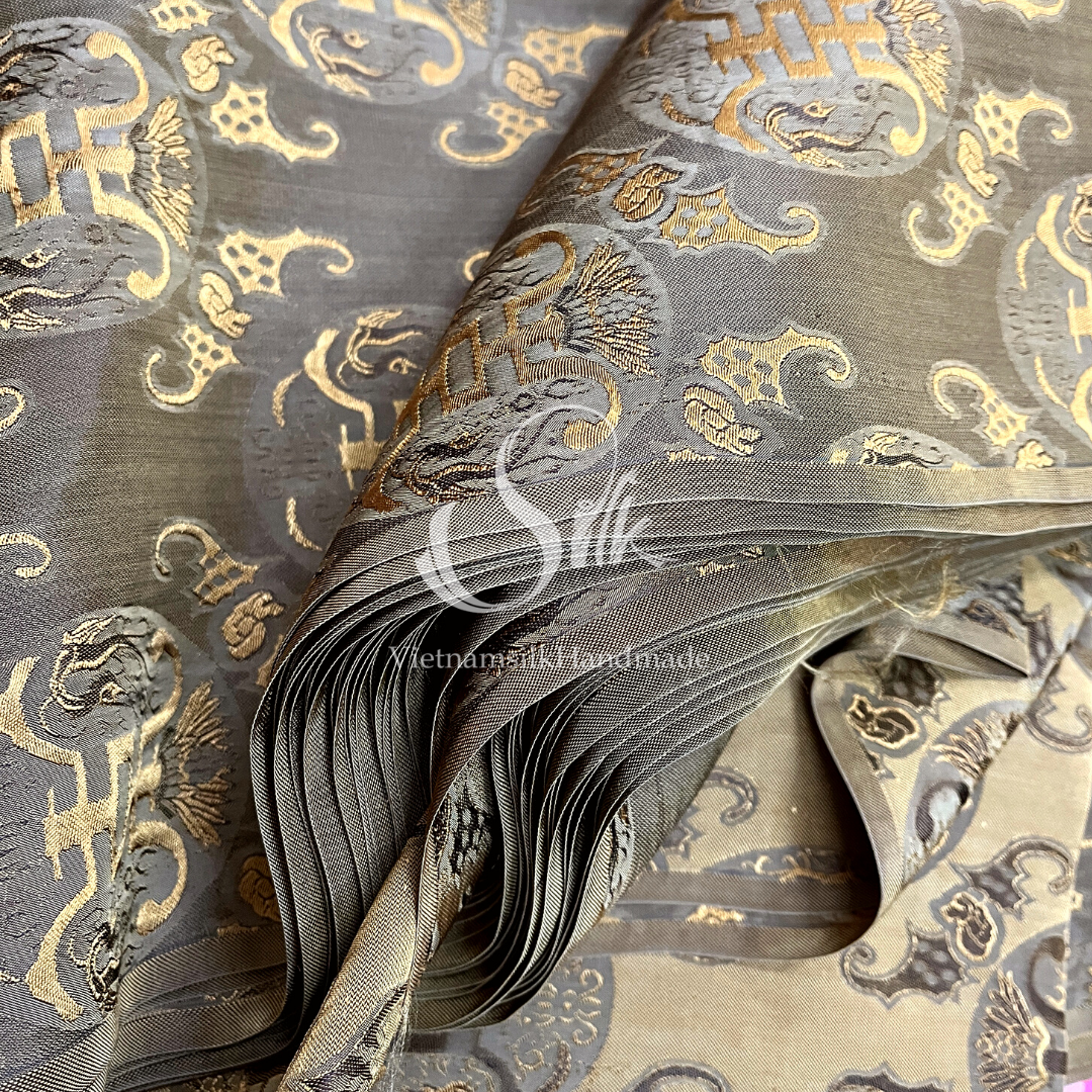 Silk with Bronze patterns - PURE MULBERRY SILK fabric by the yard -Luxury Silk - Natural silk - Handmade in VietNam- Silk with Design